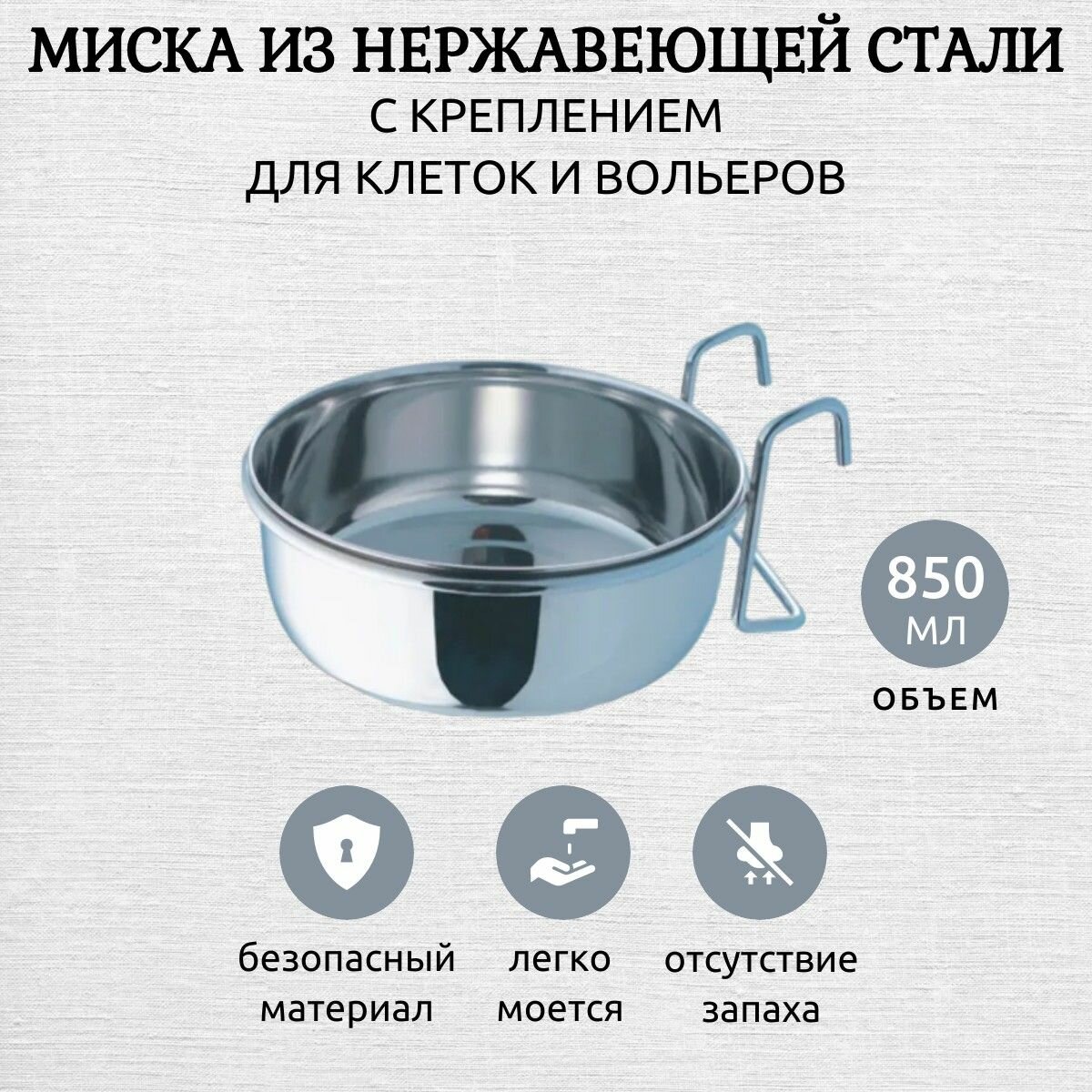 Купить Миска Mr.Kranch из нержавеющей стали с креплением для клеток и вольеров 850 мл MKR004404