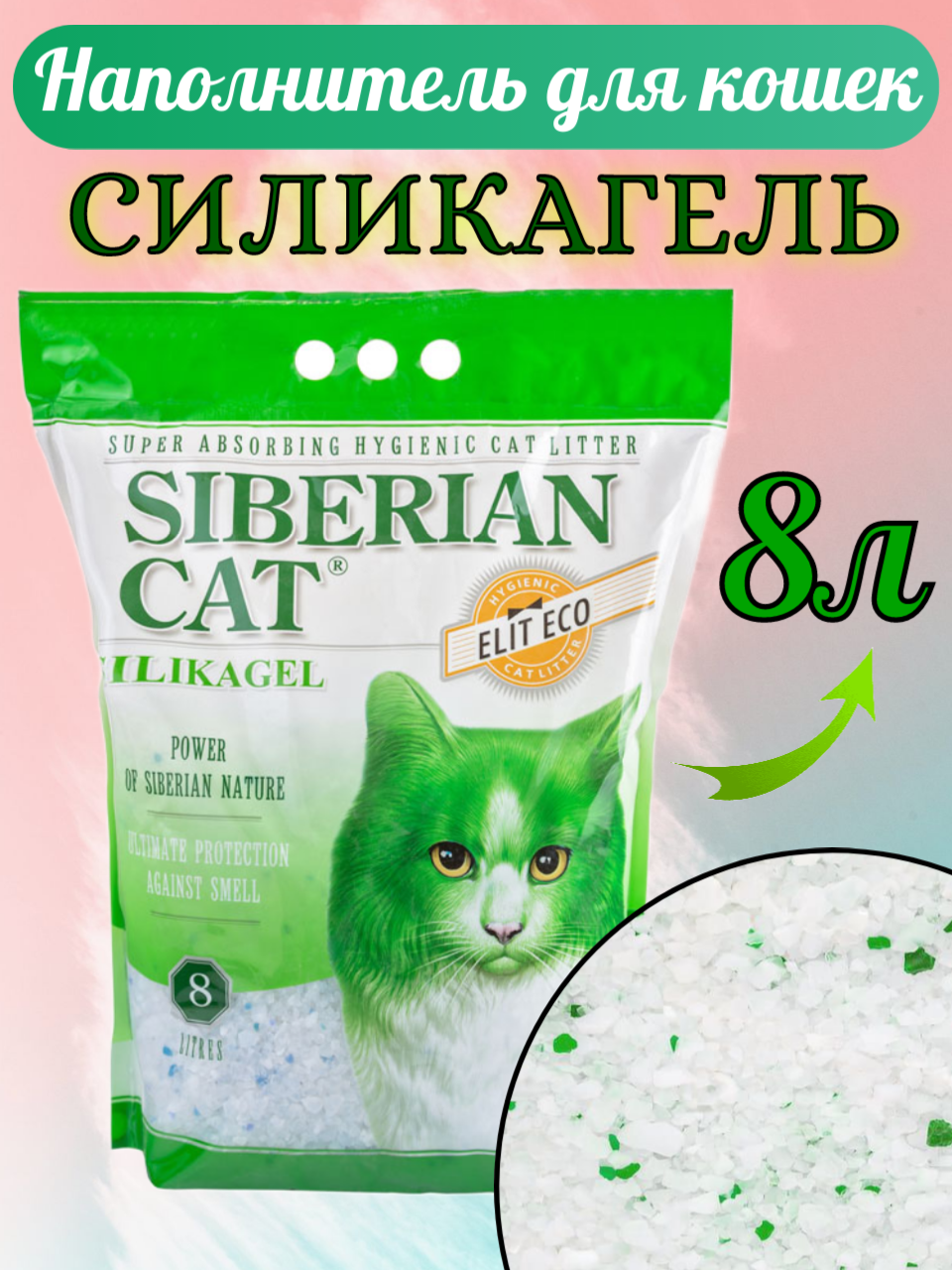 Наполнитель для кошачьего туалета 8л сибирская кошка силикагелевый Элита зеленые гранулы интересное: