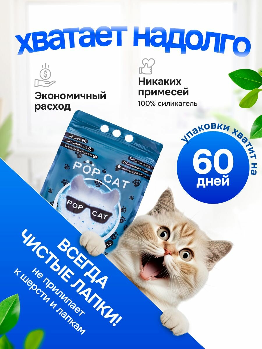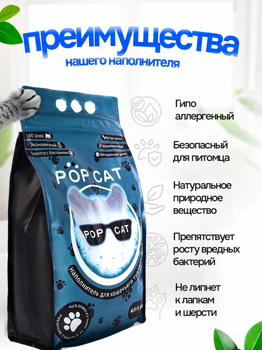 Силикагелевый наполнитель для кошачьего туалета PopCat 4л, 1,6кг интересное: