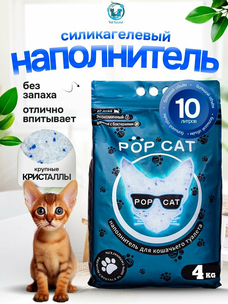 Силикагелевый наполнитель для кошачьего туалета PopCat 10л, 4 кг интересное: