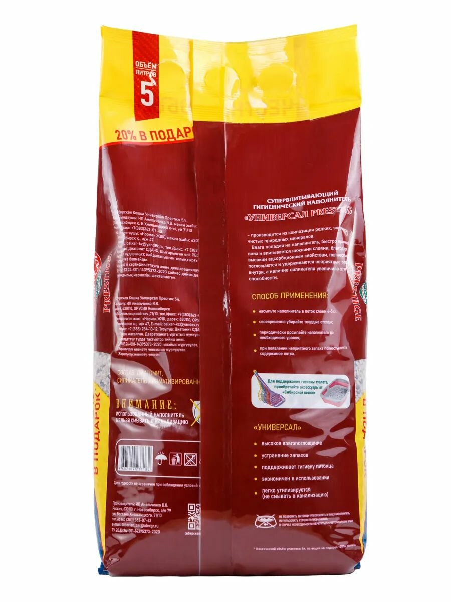 Купить Наполнитель для кошачьего туалета сибирская кошка Универсал престиж 5л впитывающий