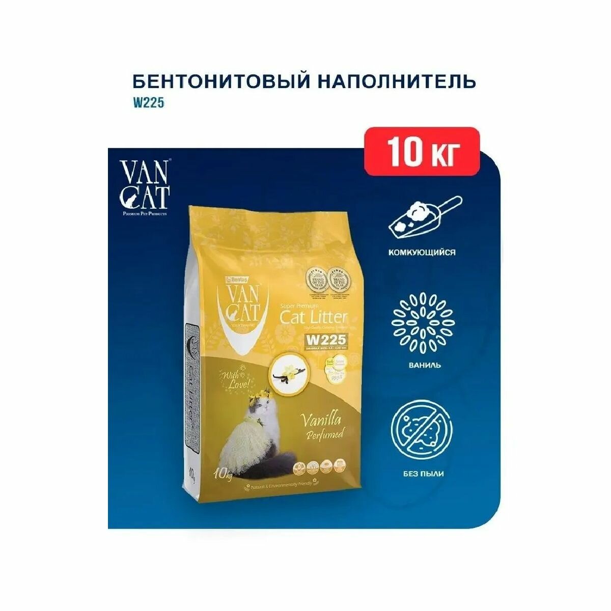 Купить VAN CAT VANILLA 10кг Наполнитель комкующийся для кошачьего туалета с ароматом ванили