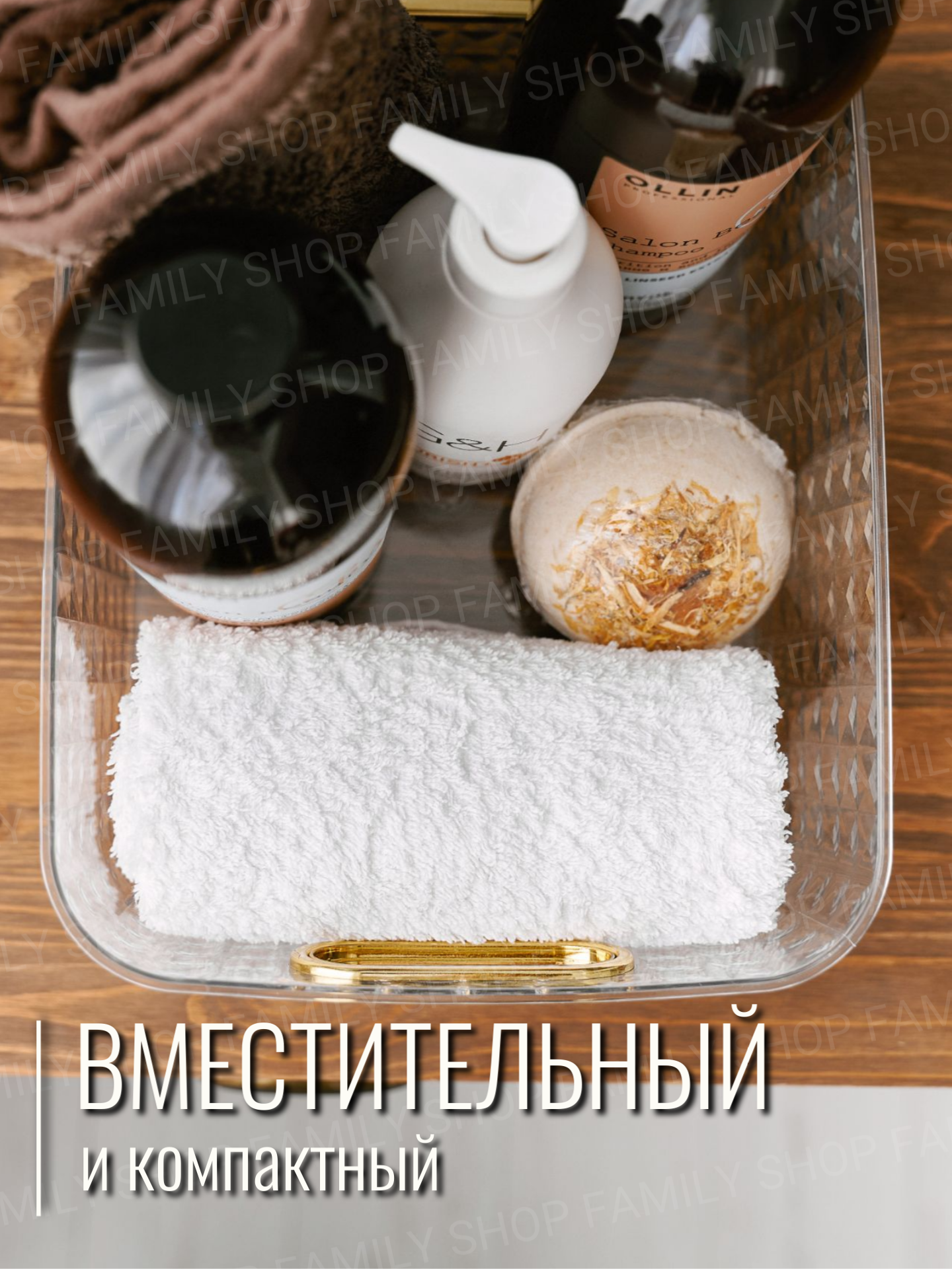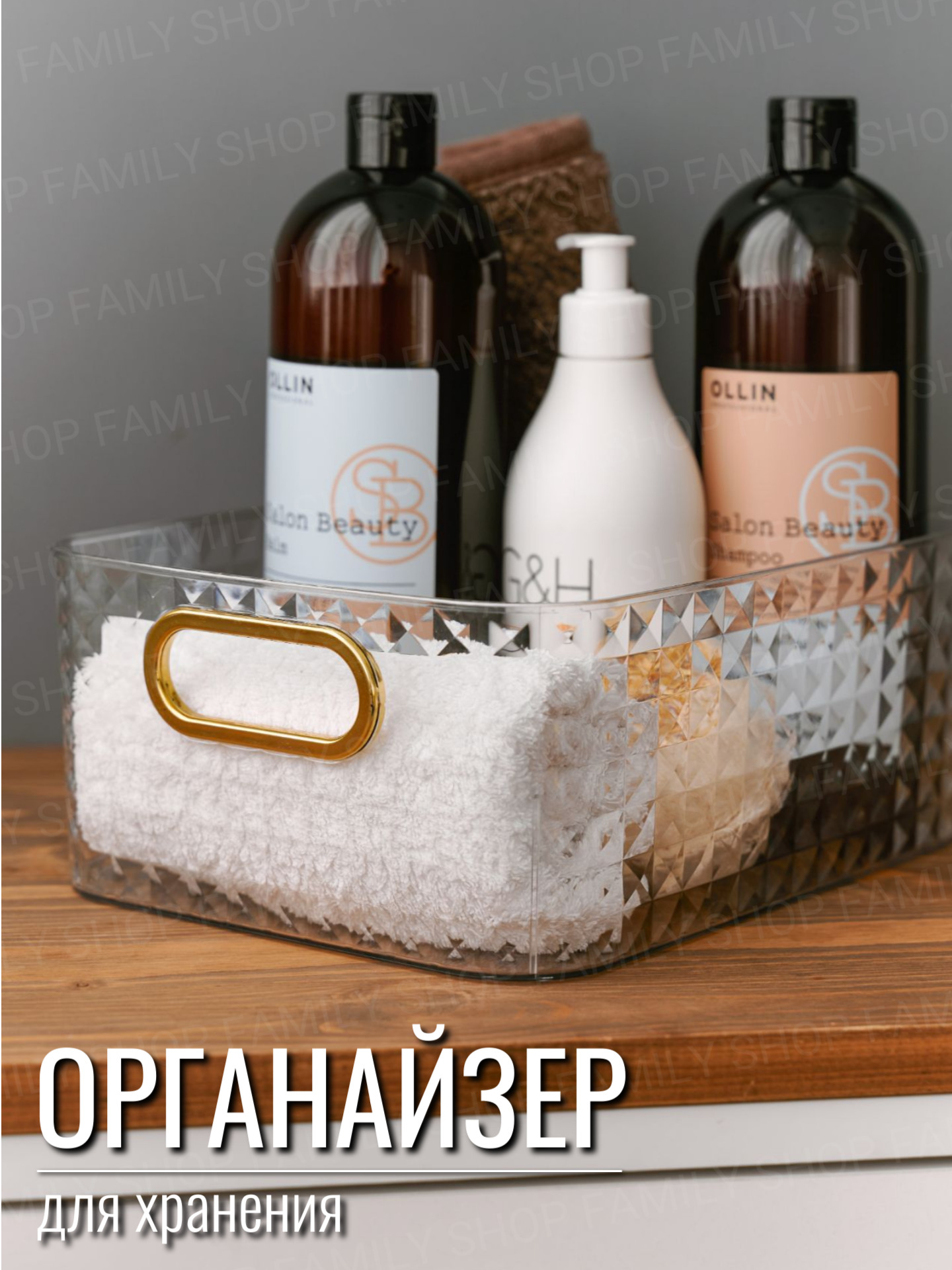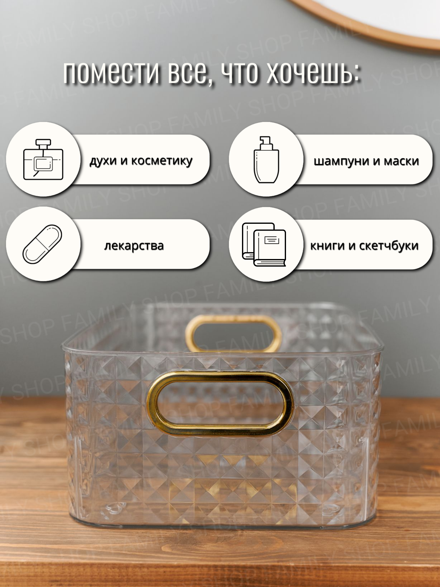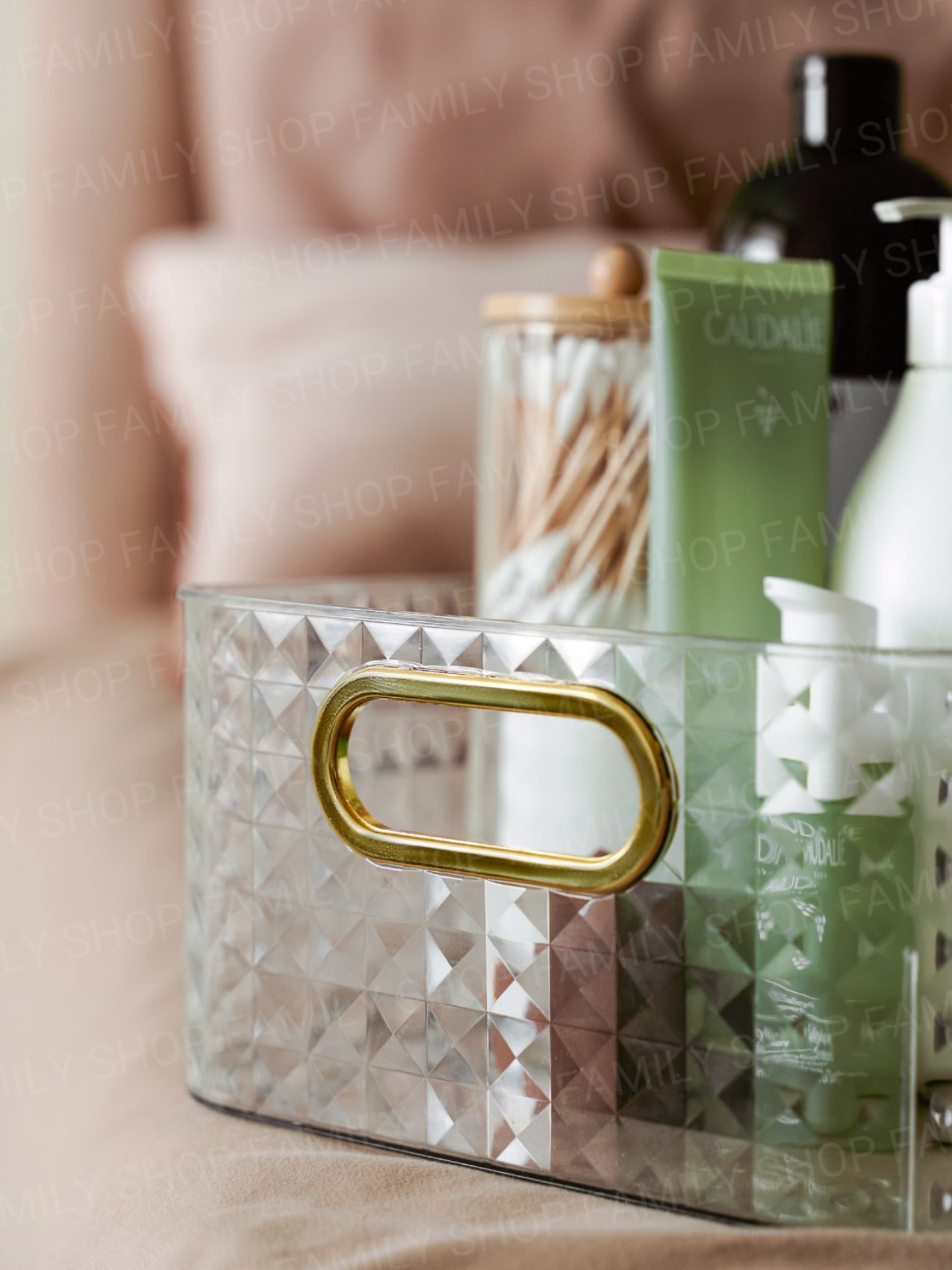Корзина для косметики с золотыми ручками / Органайзер универсальный прозрачный интересное: