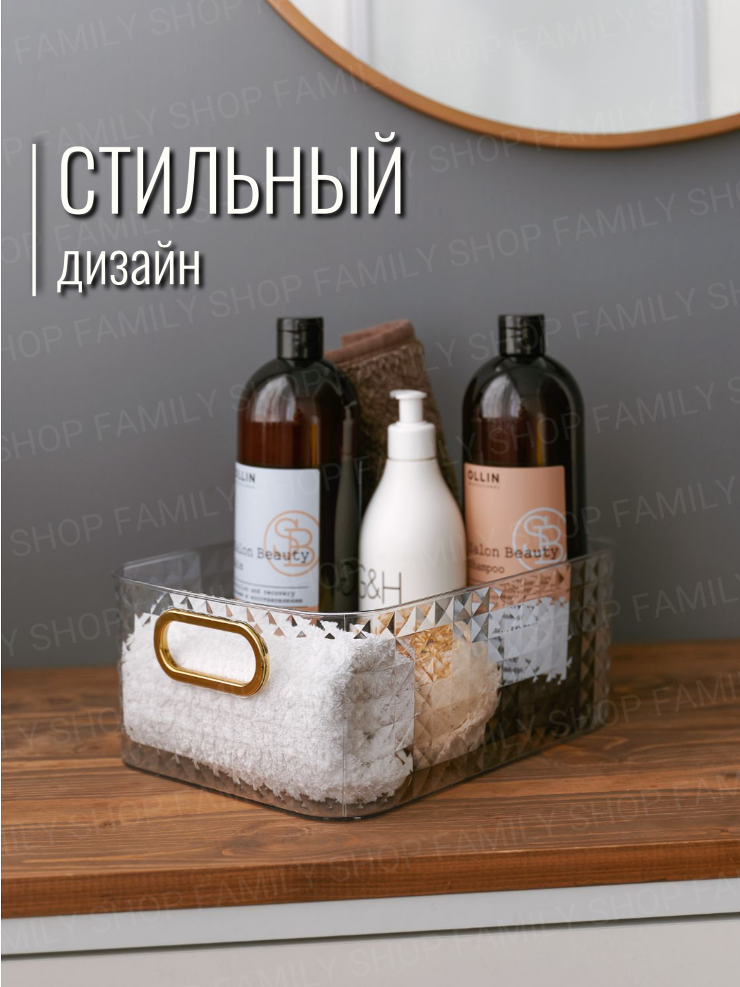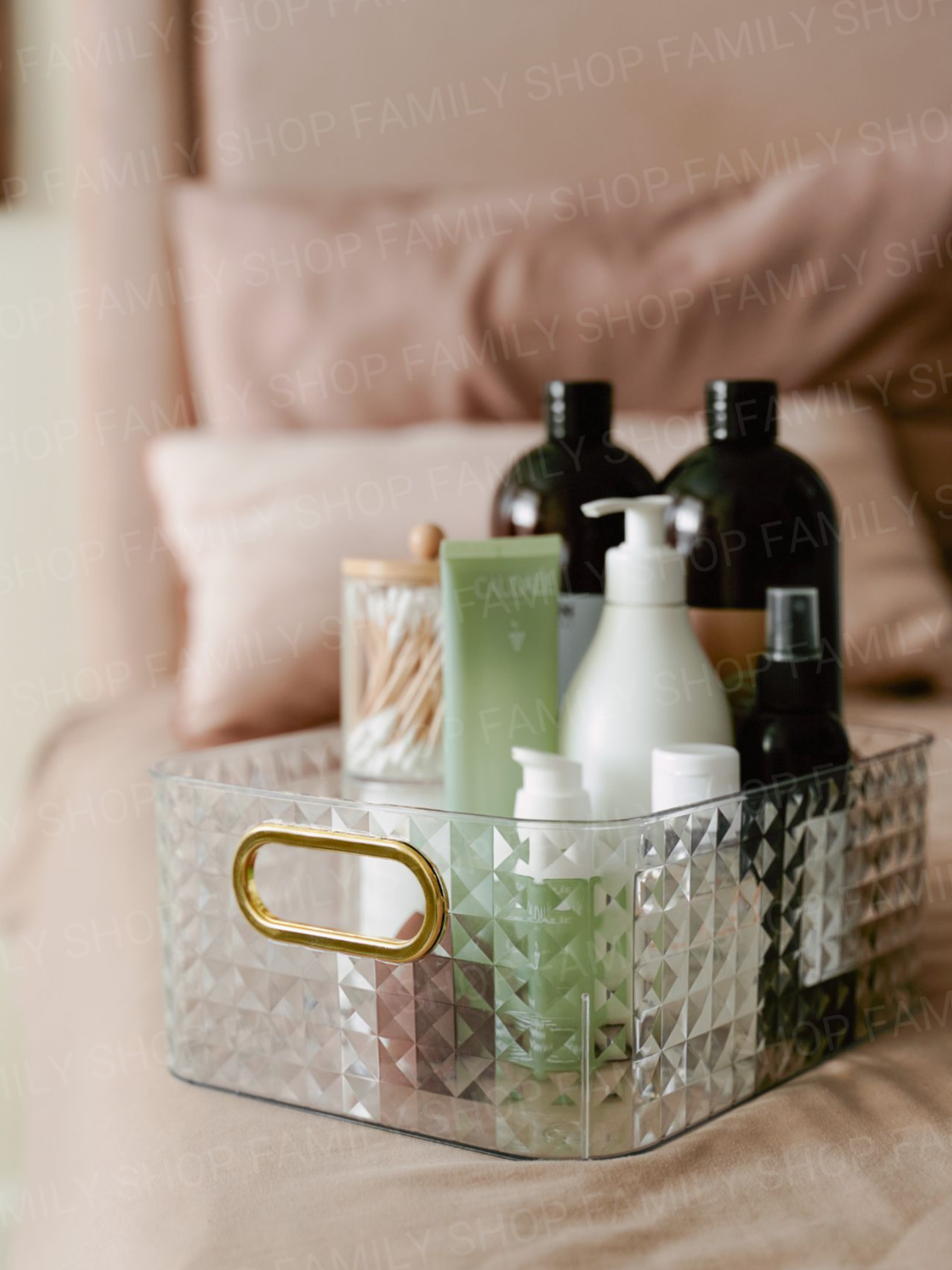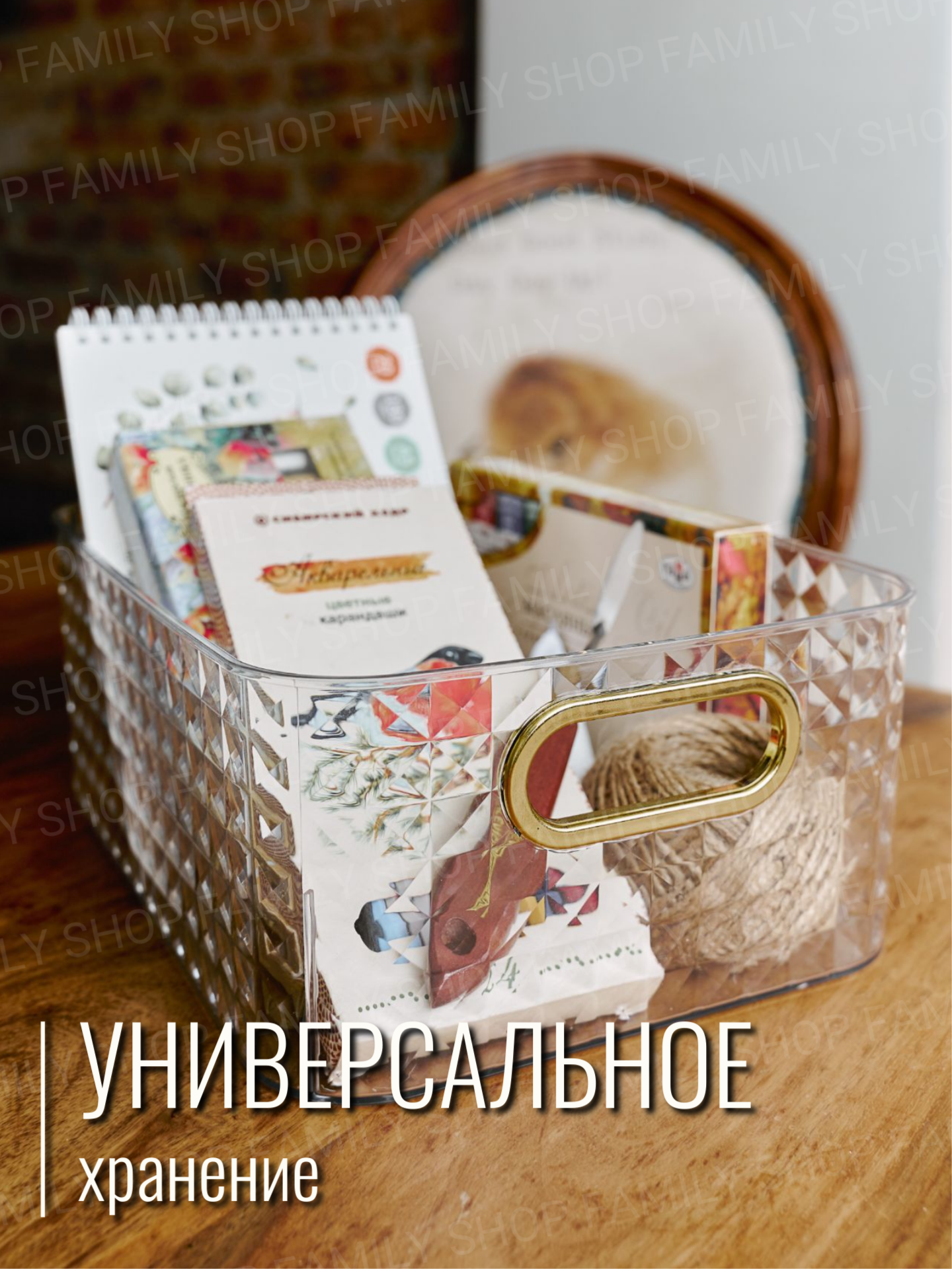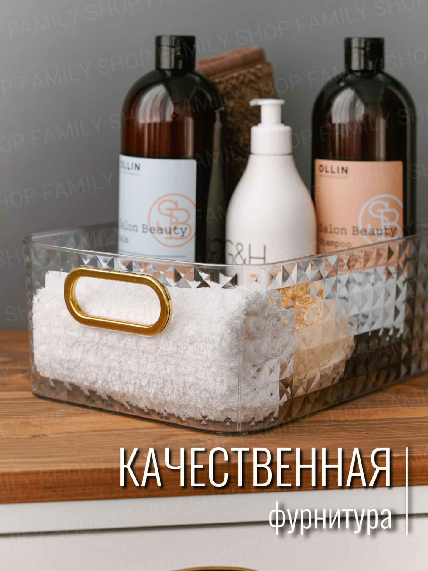 Корзина для косметики с золотыми ручками / Органайзер универсальный прозрачный интересное: