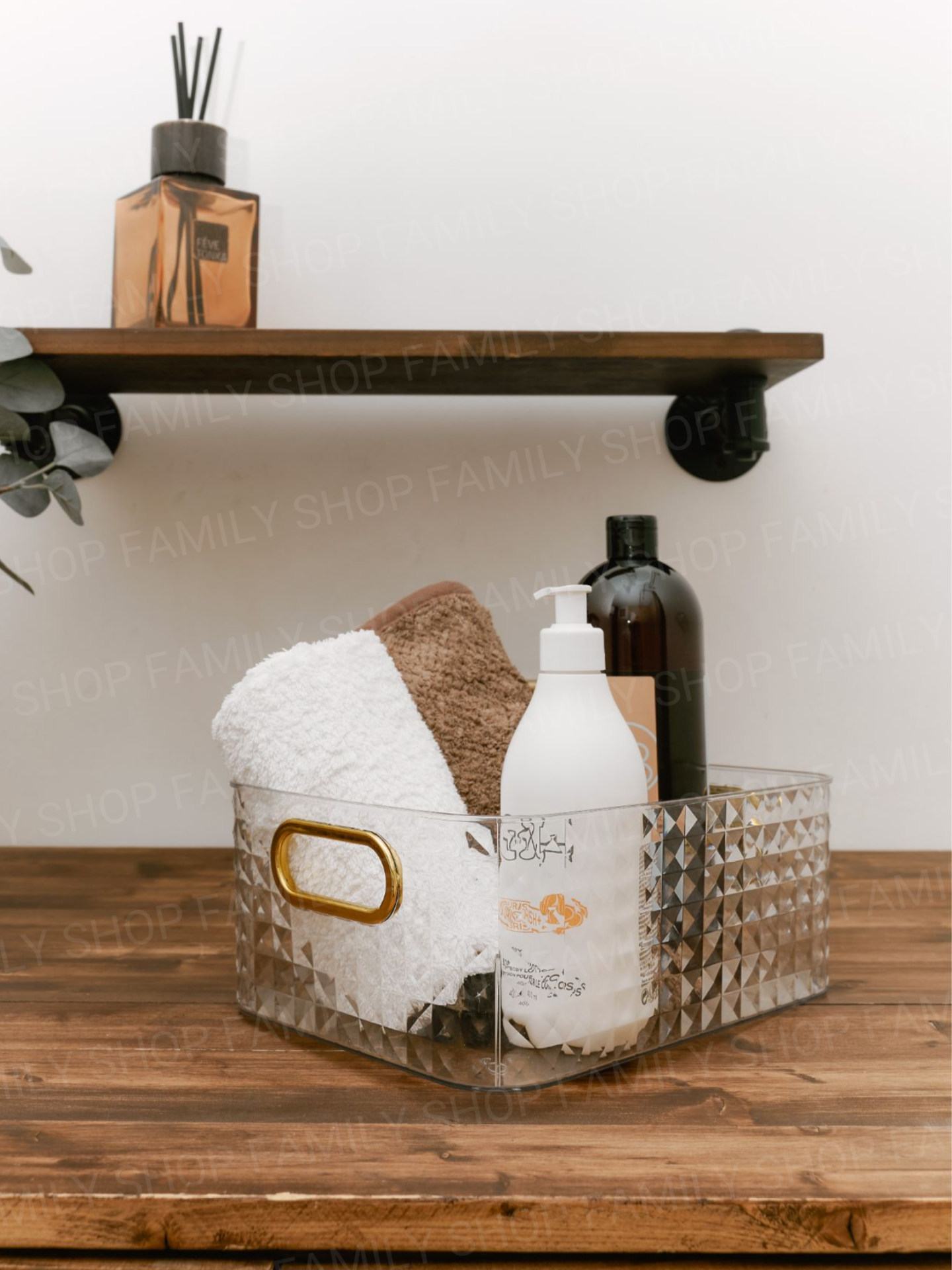 Купить Корзина для косметики с золотыми ручками / Органайзер универсальный прозрачный