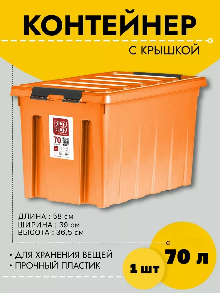 Контейнер пластиковый Rox Box, 70 л прозрачный, для хранения