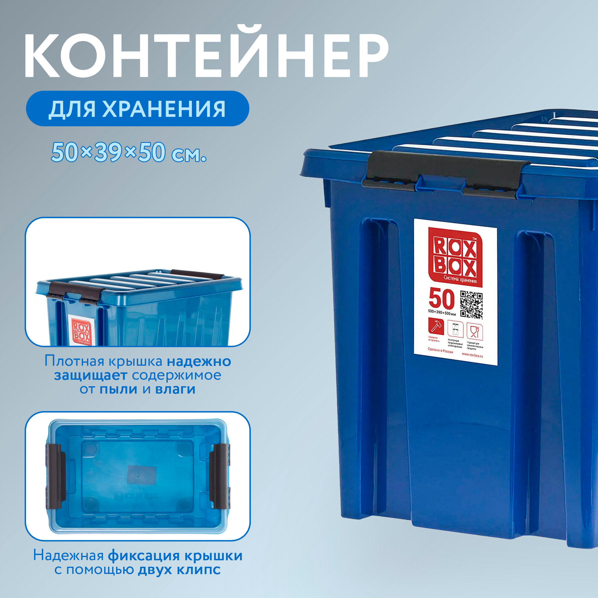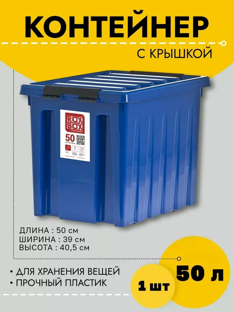 Купить Контейнер для хранения RoxBox с крышкой, 50 л, 50х39х40 см, синий