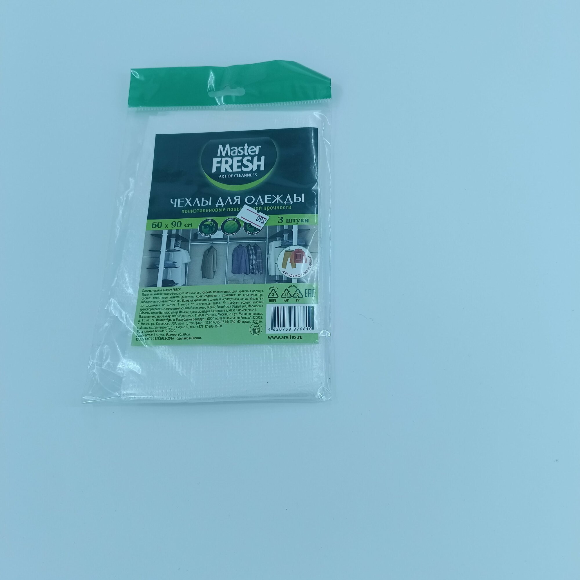 Чехлы для одежды полиэтилен. 60 Х 90 СМ (упак. 3 ШТ (1/50) "MASTER FRESH