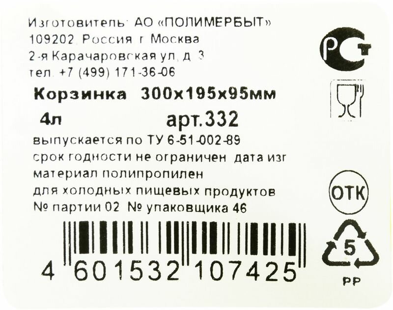 Корзинка 300*195*95 4л бежевый/коричневый 433320000 Полимербыт (арт. 829496) интересное: