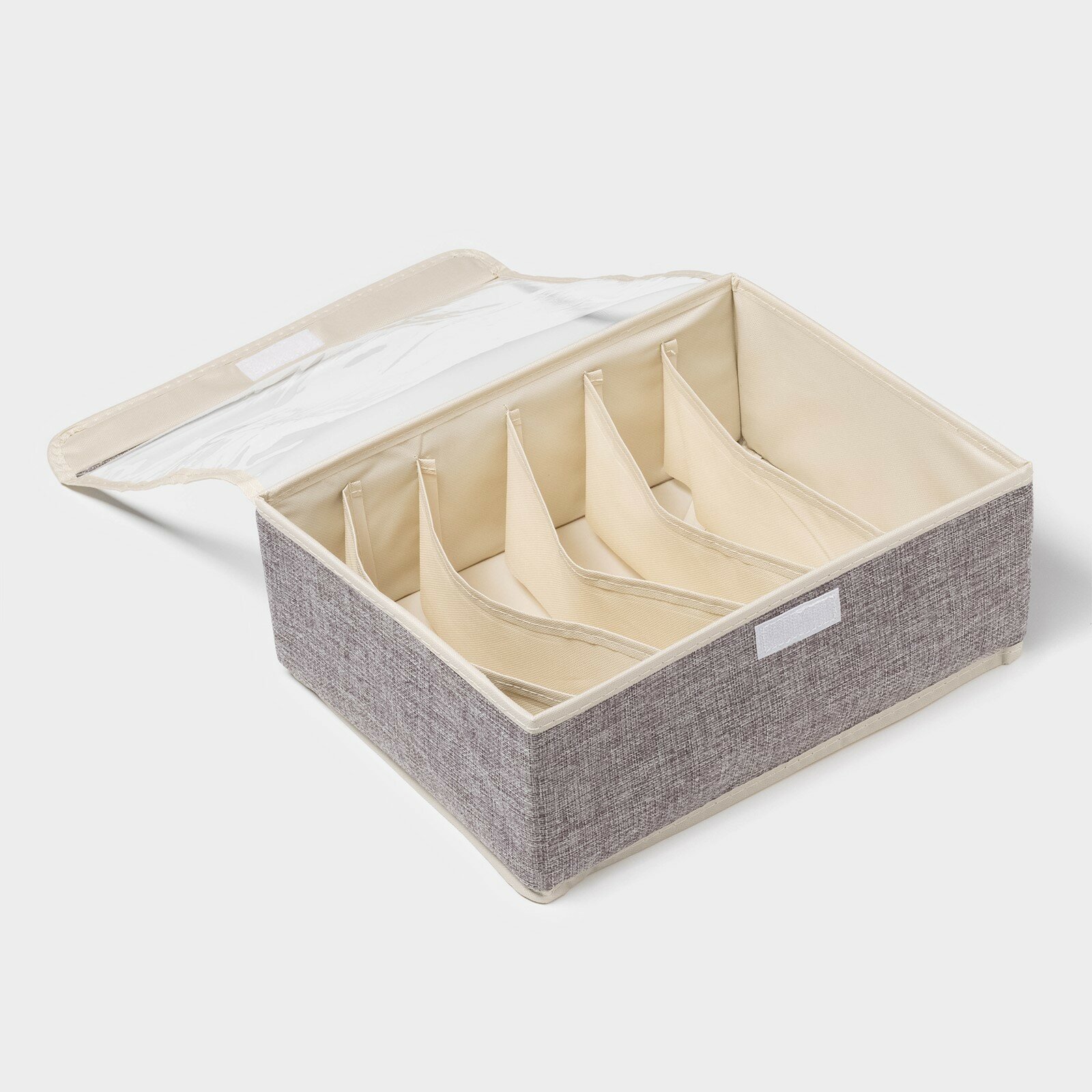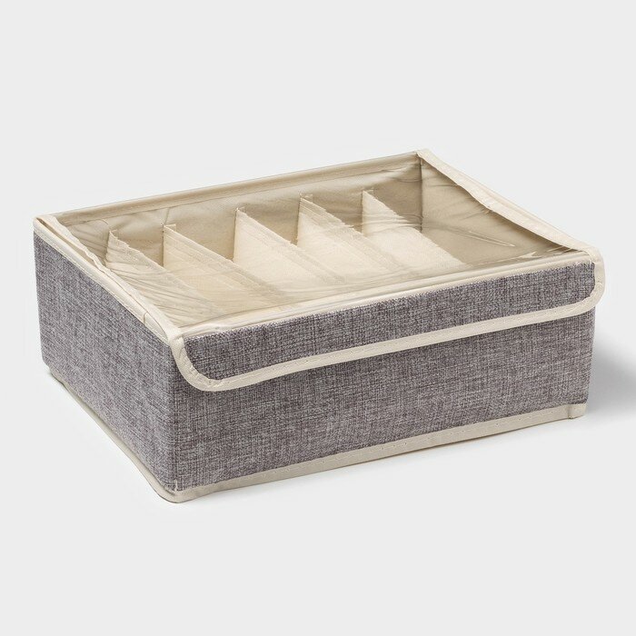 Купить Органайзер для хранения белья с прозрачной крышкой Доляна «Тео», 6 отделений, 32×23×12 см, цвет серый