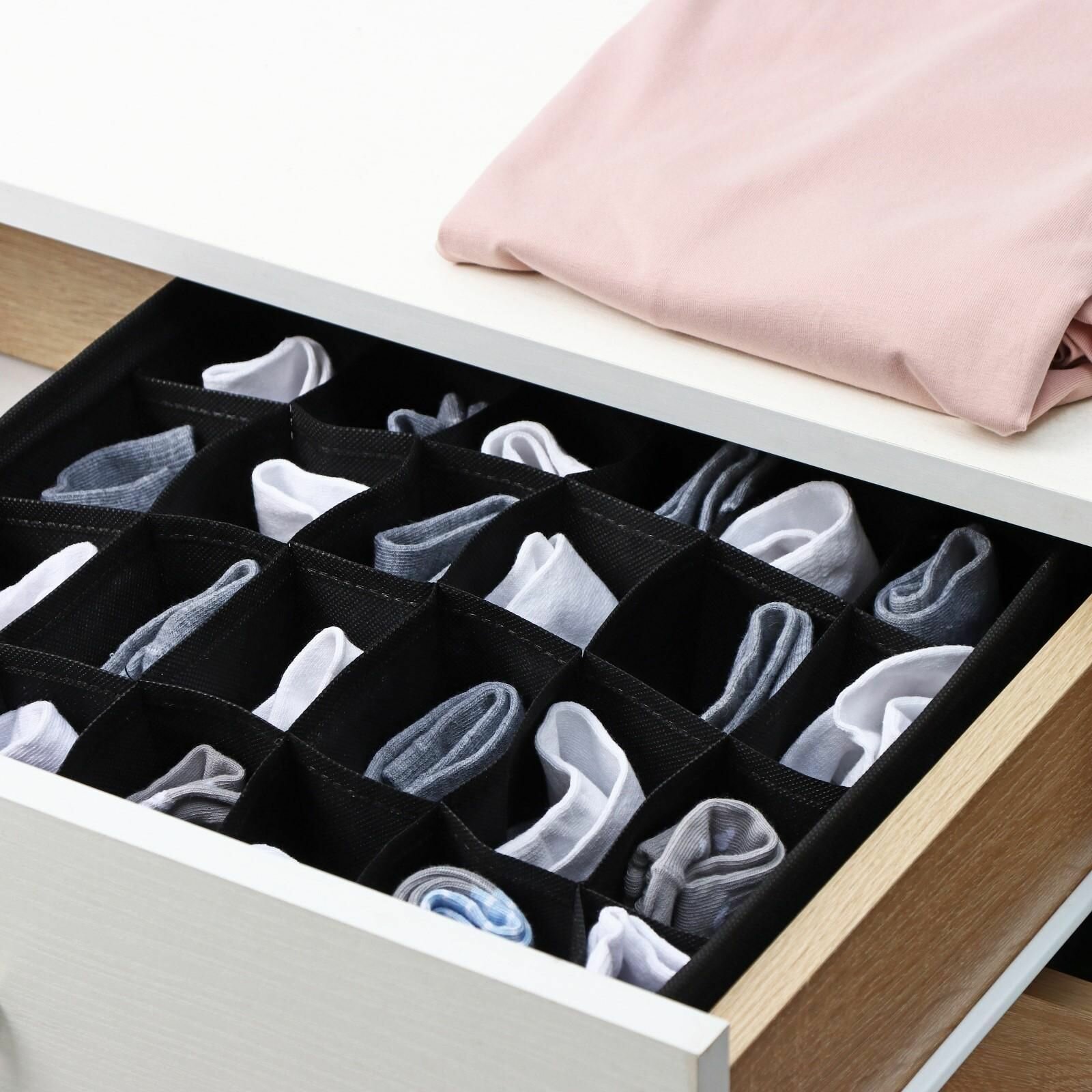 Купить Органайзер для хранения белья Доляна «Смарт», 24 ячейки, 32×32×10 см, чёрный