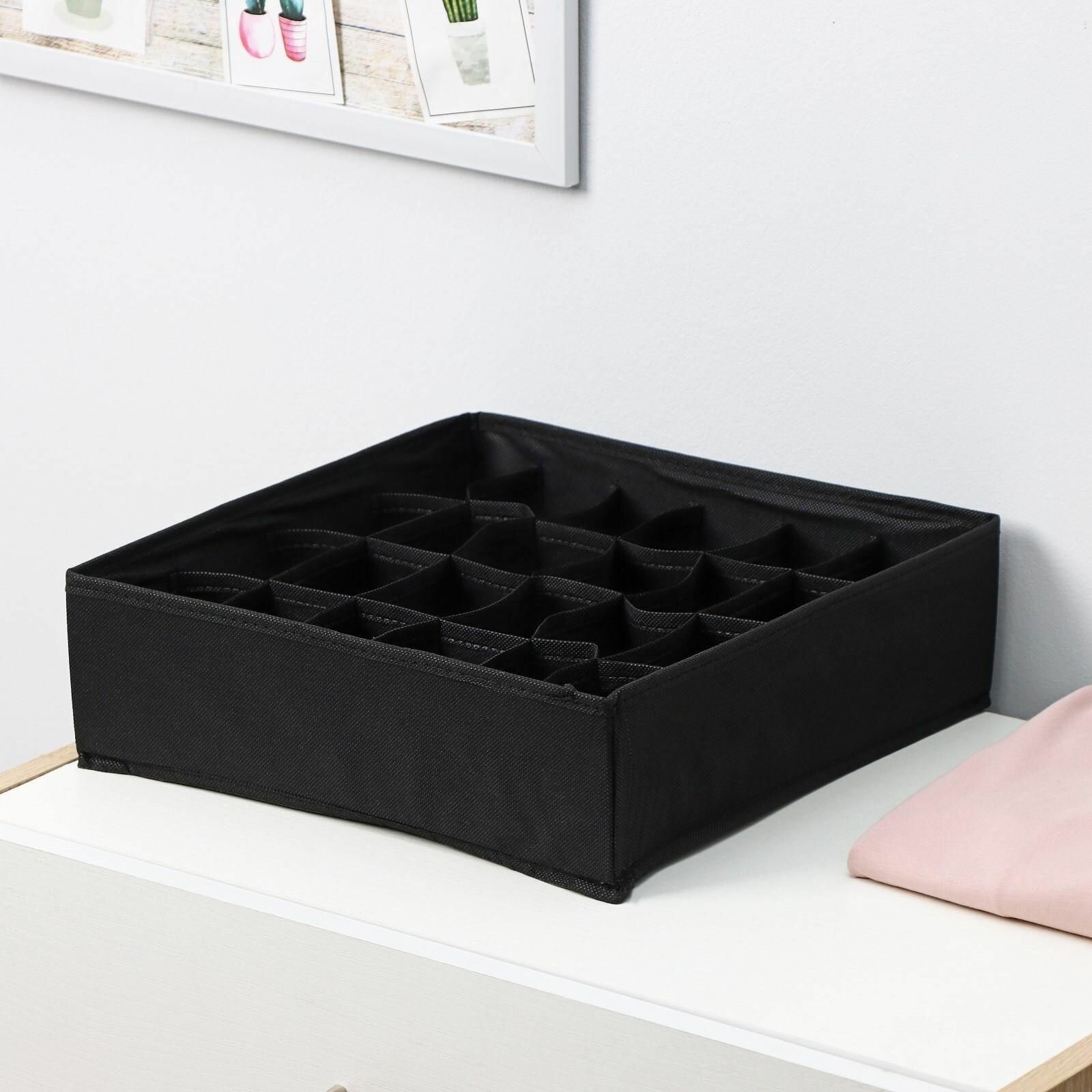 Органайзер для хранения белья "Кло", 16 ячеек, 32x32x12 см, цвет чёрный