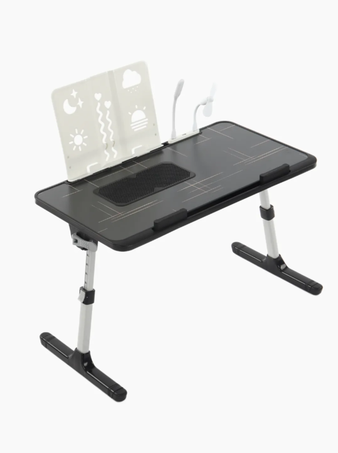 | Подробная комплектация | Стол со встроенным вентилятором - 1 шт. Стопер для ноутбука - 2 шт. USB разветвитель на 3 порта и кабель к нему - 1 шт. Вентилятор - 1 шт. Лампа - 1 шт. Подставка для книг - 1 шт. Выдвижной ящик - 1 шт. |