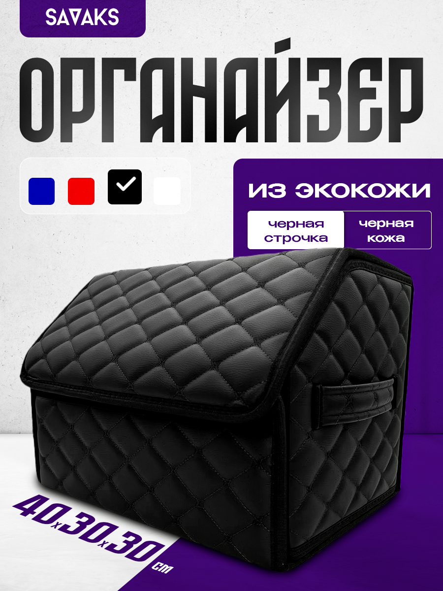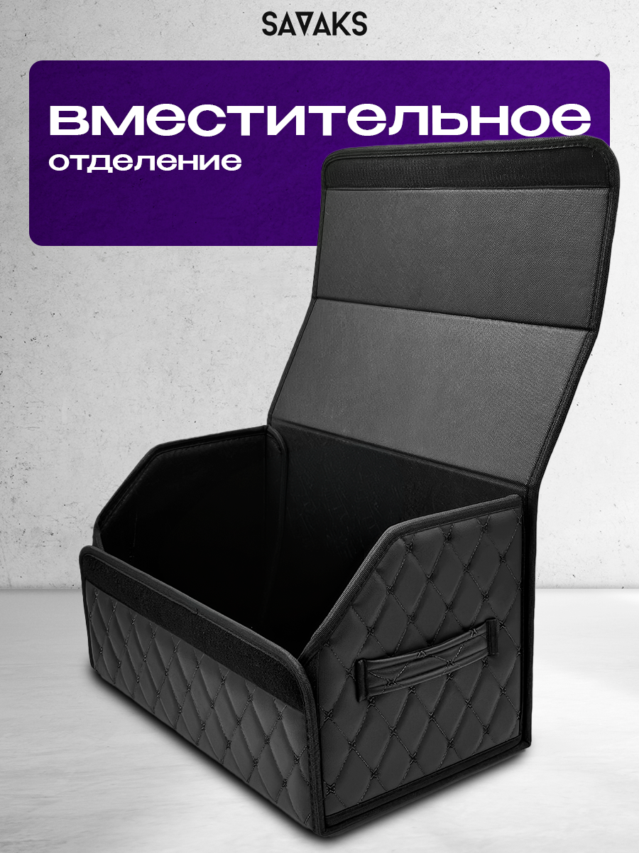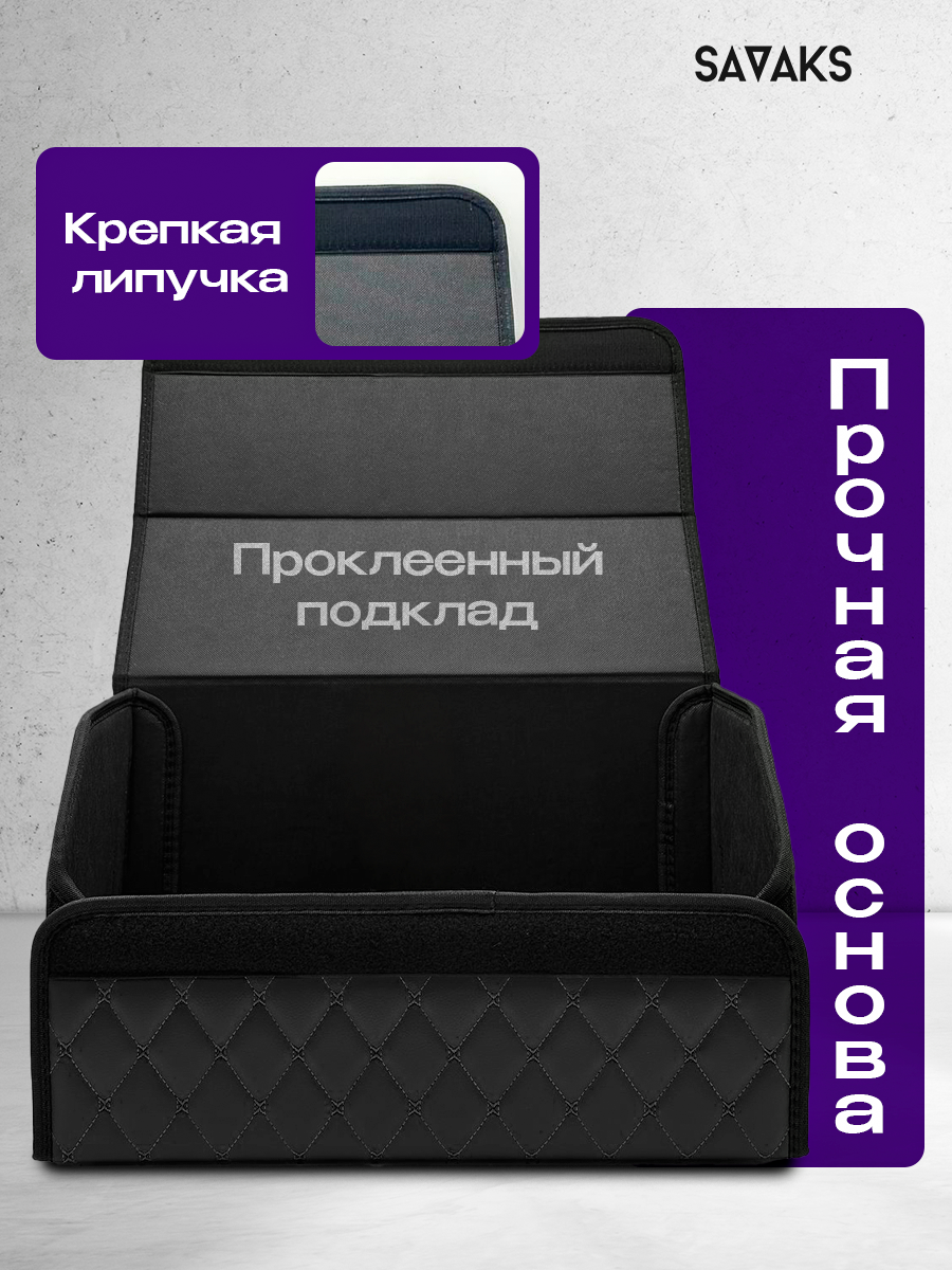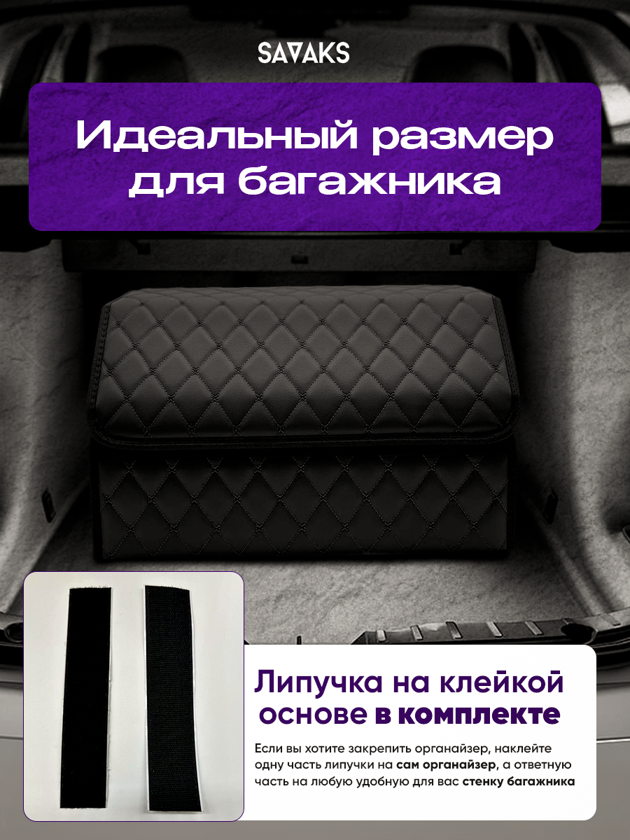 Купить Автомобильный органайзер SaVakS 40х30 см в багажник черный,черная строчка