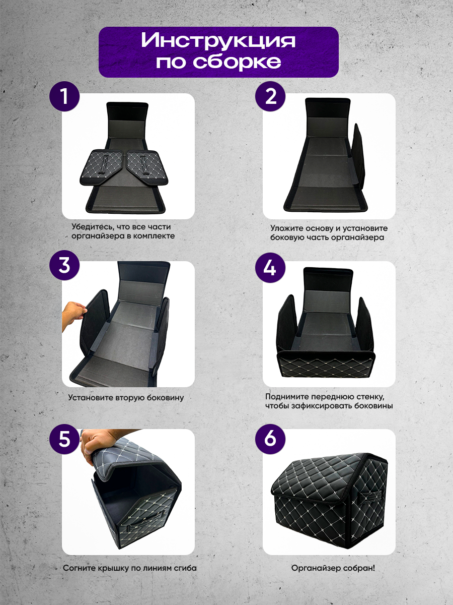 Органайзер в багажник 40 см / Автосумка Эко кожа / Сумка в багажник