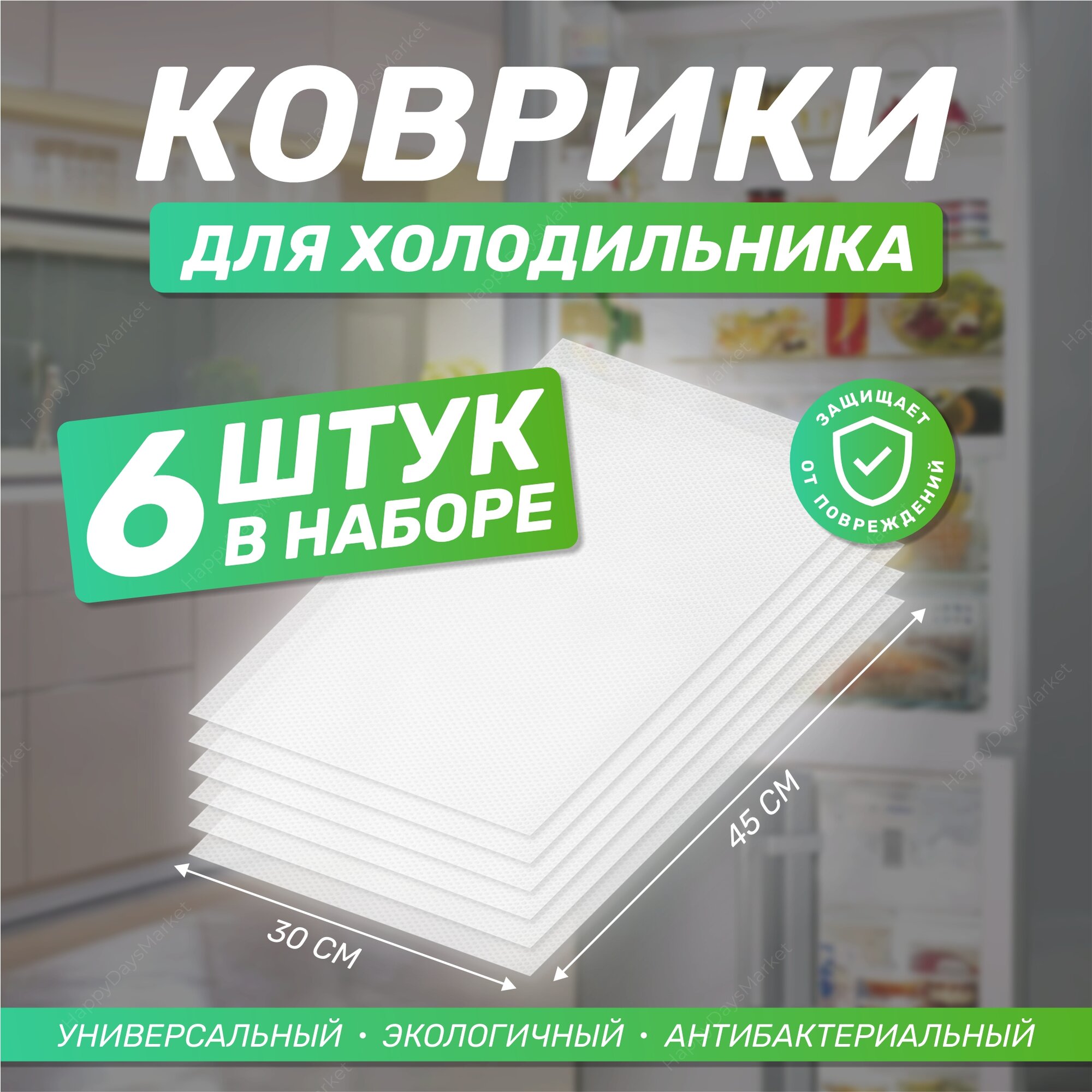 Коврики силиконовые защитные для кухонных полок, ящиков, холодильника. Антибактериальные. 6шт. Белые полупрозрачные