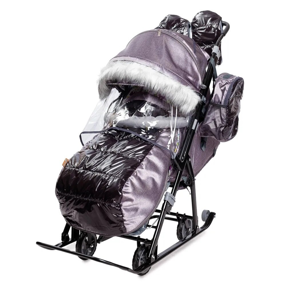 Санки-коляска "Galaxy Nova" сатин серо-коричневый, с перекидной ручкой интересное: