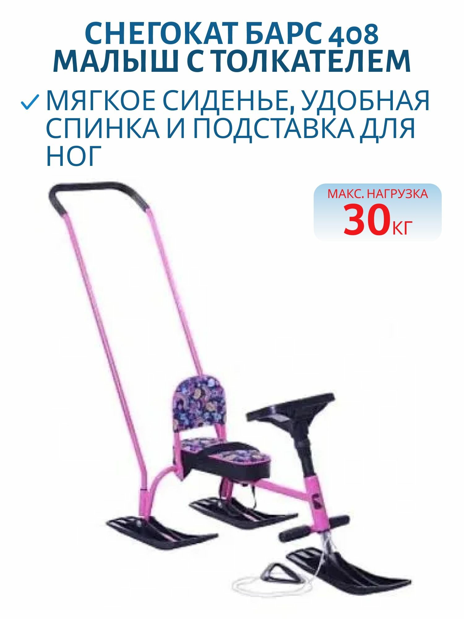 Снегокат Барс 408 Малыш с толкателем, цвет розовый интересное: