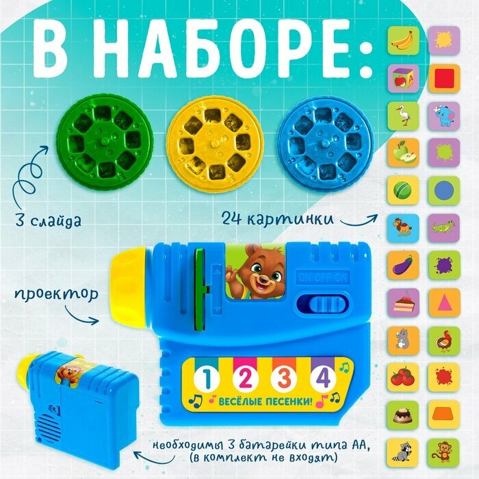 Купить Музыкальный проектор «Весёлые уроки», 3 слайда, звук, свет