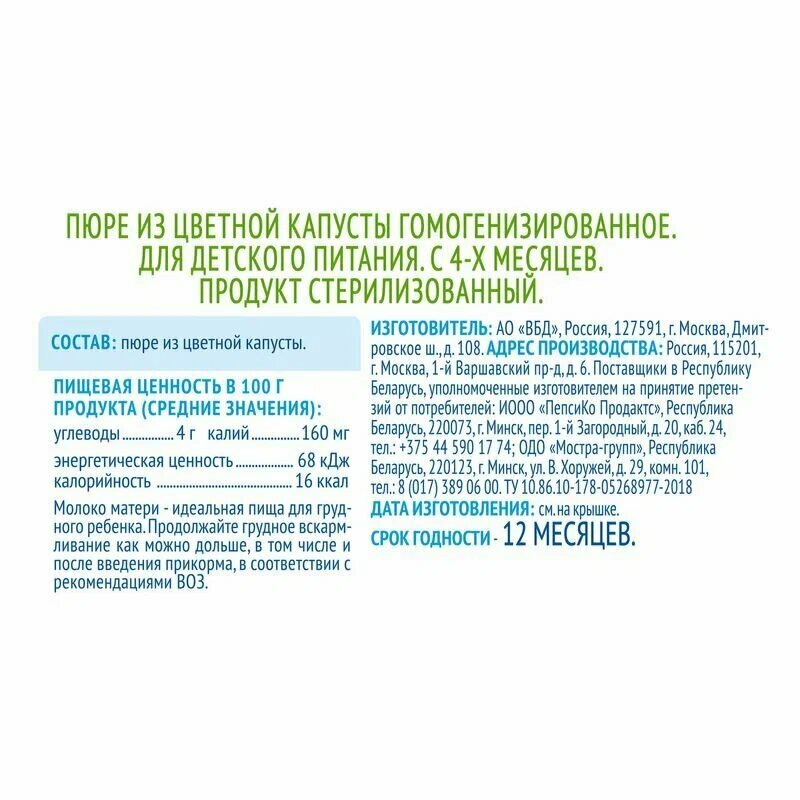 Агуша Овощные пюре Капуста цветная с 4 мес стекло 80 г 1 шт интересное: