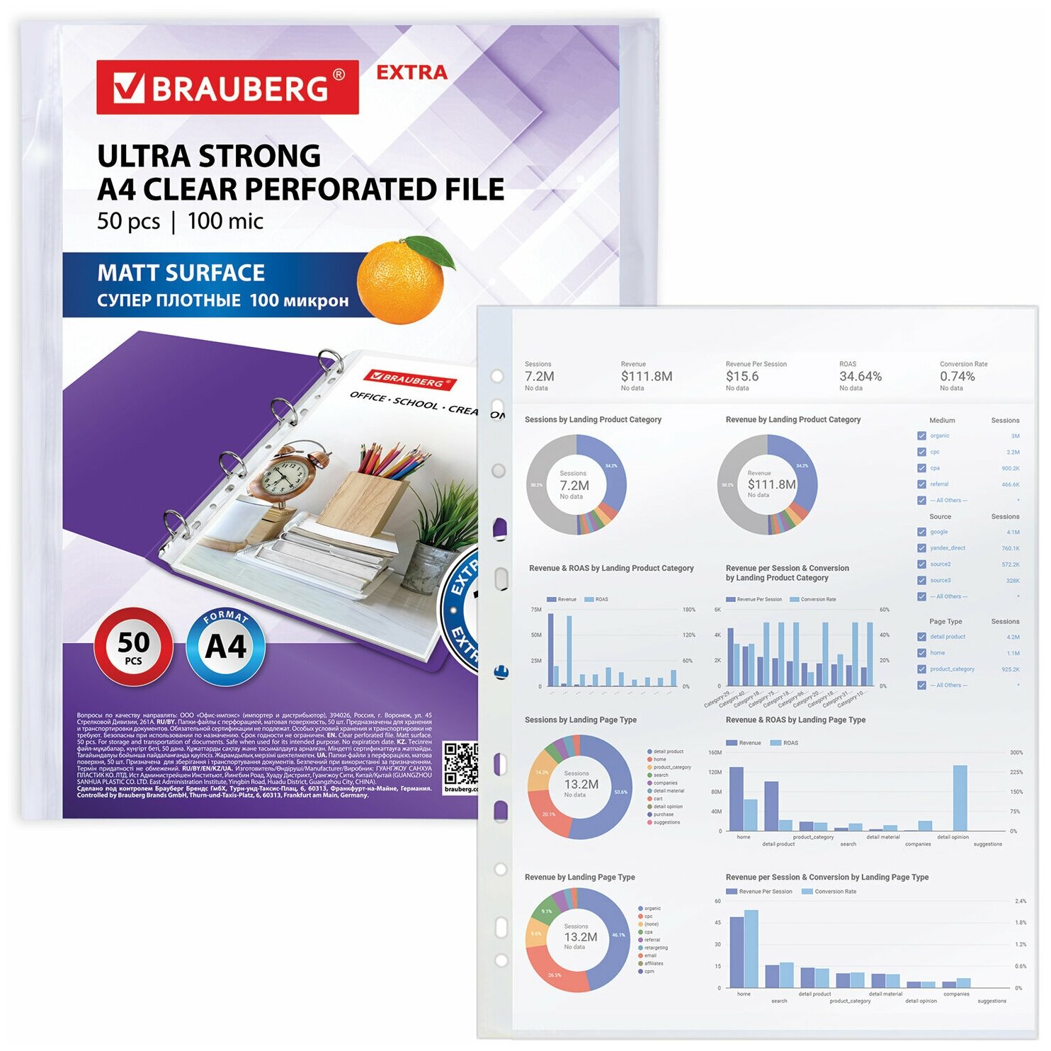 Папка-файл / вкладыш / мультифора с перфорацией плотные А4 Brauberg Extra 1000, Комплект 50 штук, матовые, 100 мкм, 229671 интересное: