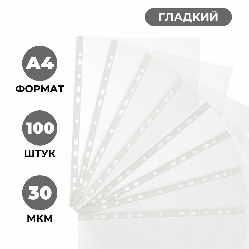 Файлы А4, гладкие, Attache, с перфорацией, 30 мкм, 100 шт интересное: