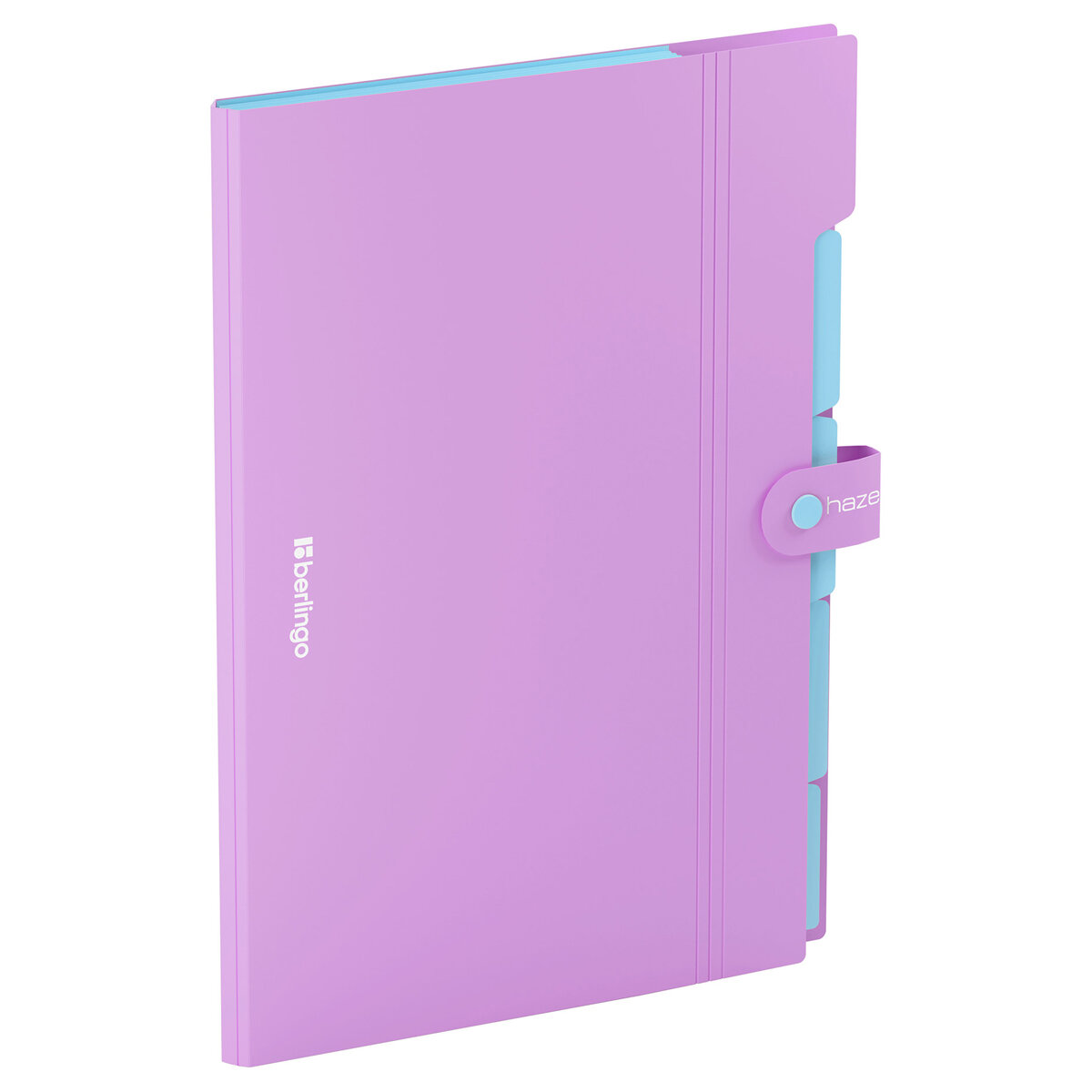 Купить Папка органайзер для хранения документов на кнопке Berlingo Haze канцелярская пластиковая, 5 отделений, А4, сиреневая