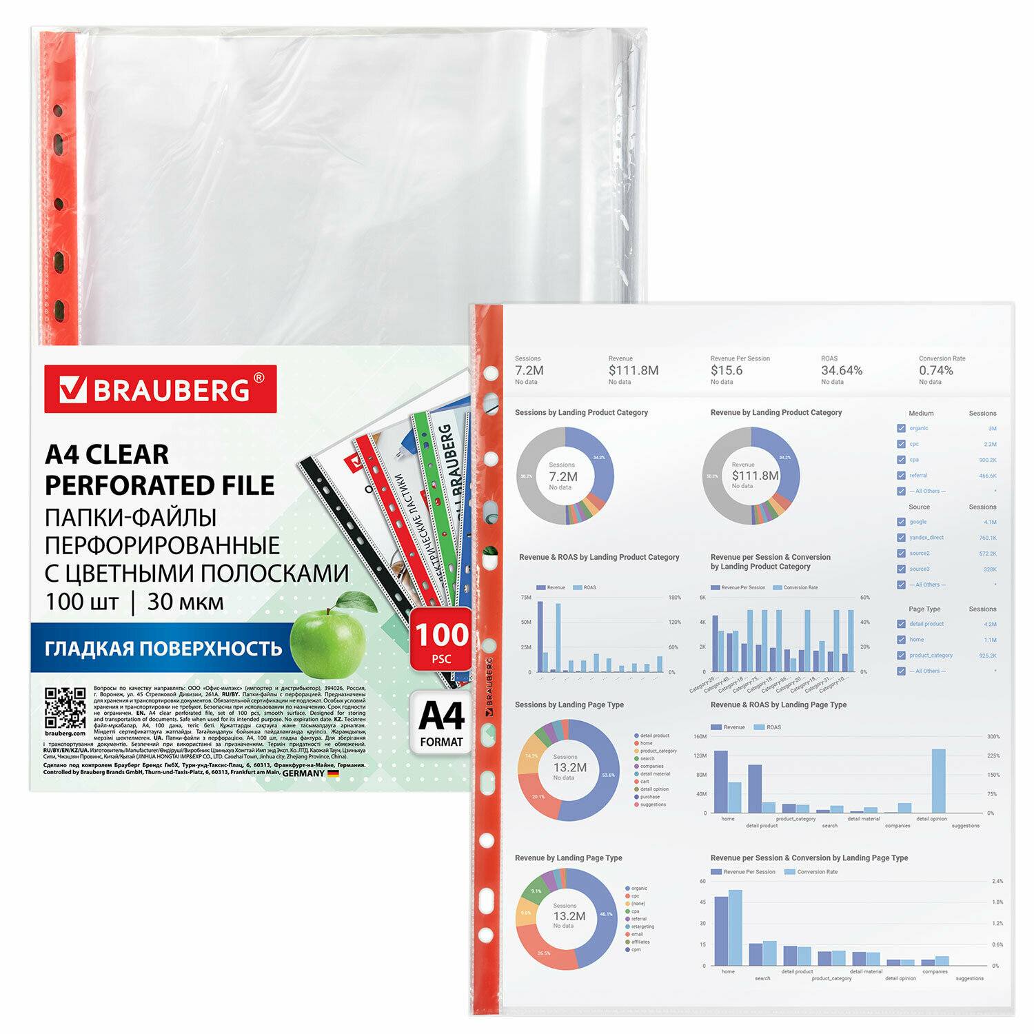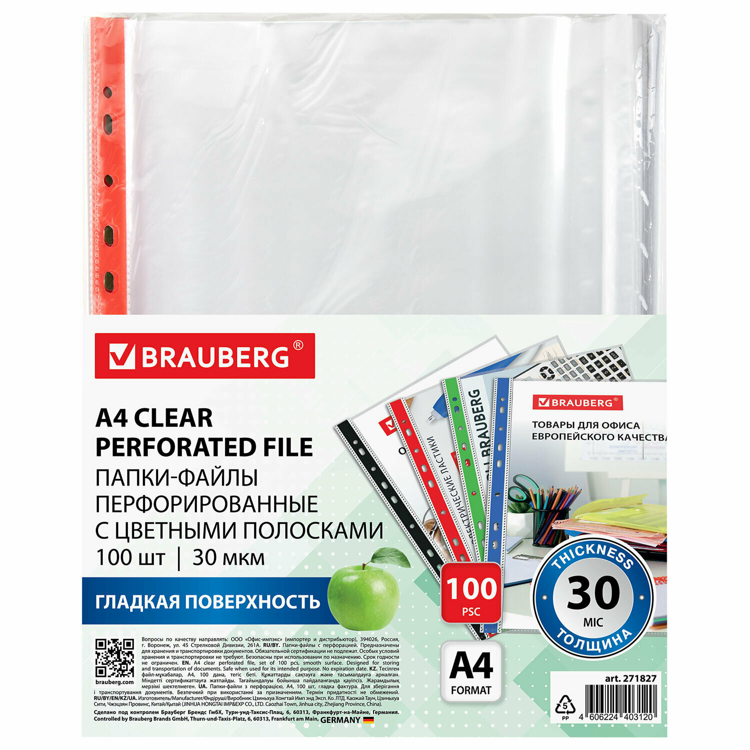 Папки-файлы Brauberg перфорированные с цветными полосками, А4, 100 штук, гладкие, 30 мкм интересное: