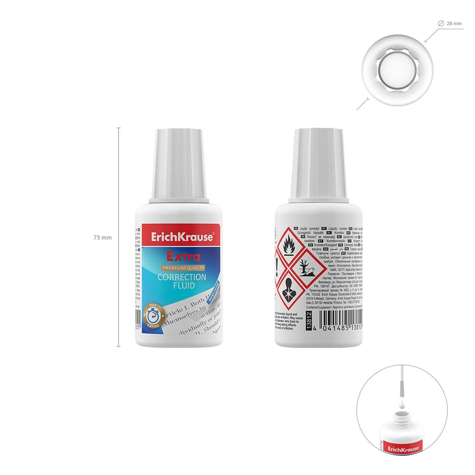 Корректирующая жидкость 20 мл, ErichKrause Extra, на основе растворителя, кисть(10 шт.)