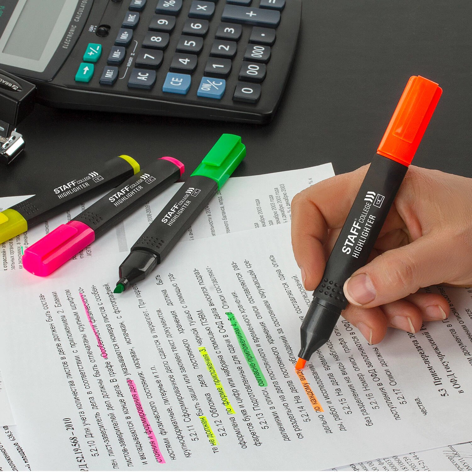 Маркер-текстовыделитель (для выделения текста) набор из 4 шт., Ассорти, Staff College Stick, линия письма 1-4 мм