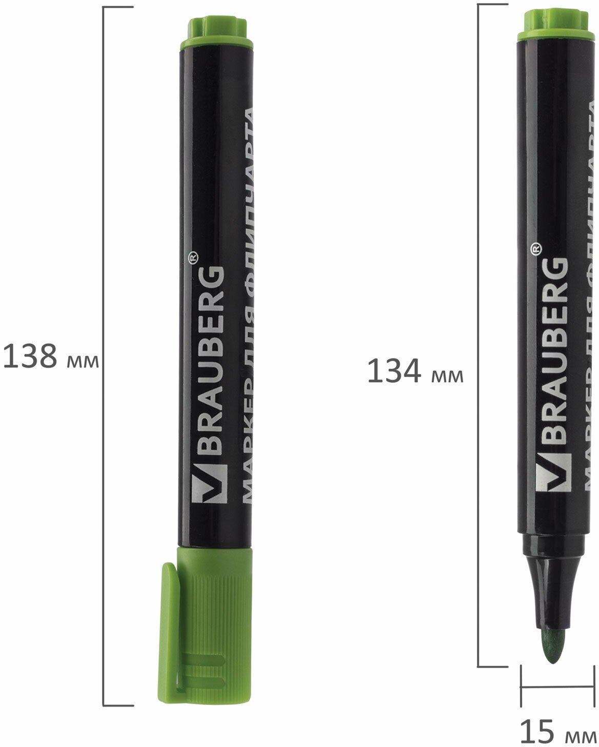 Маркеры для флипчарта Brauberg набор 4 штуки, не пропитывающие, круглые, 2,5 мм (синий, черный, красный, зеленый) (151257)