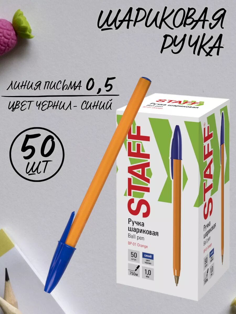 СохранитьРучка шариковая STAFF «Basic Orange BP-01», синие чернила, линия письма 0,5 мм, 50 штук интересное: