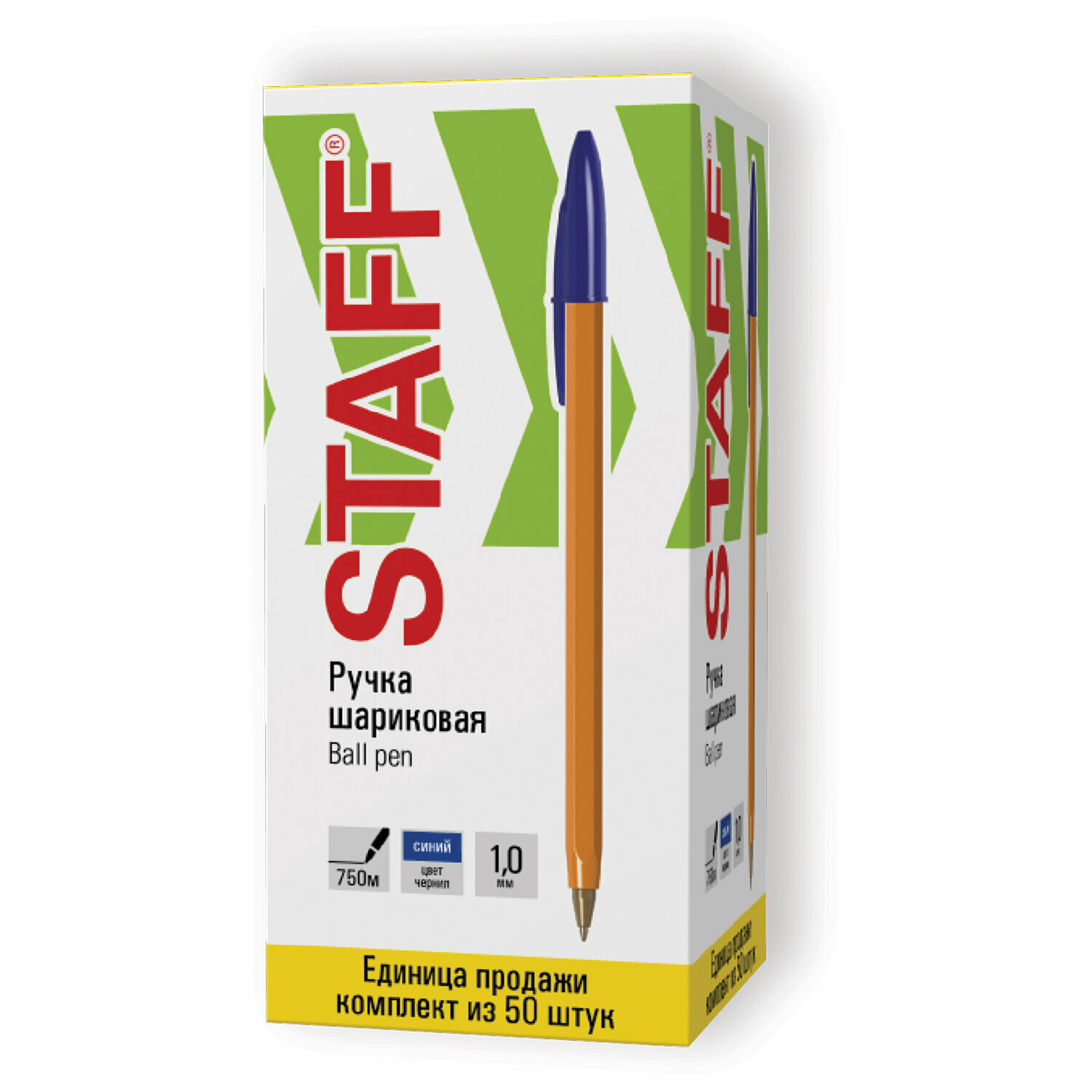 Ручка шариковая STAFF, комплект 50 штук, синяя, корпус прозрачный, узел 1мм, линия 0,5мм, 880001
