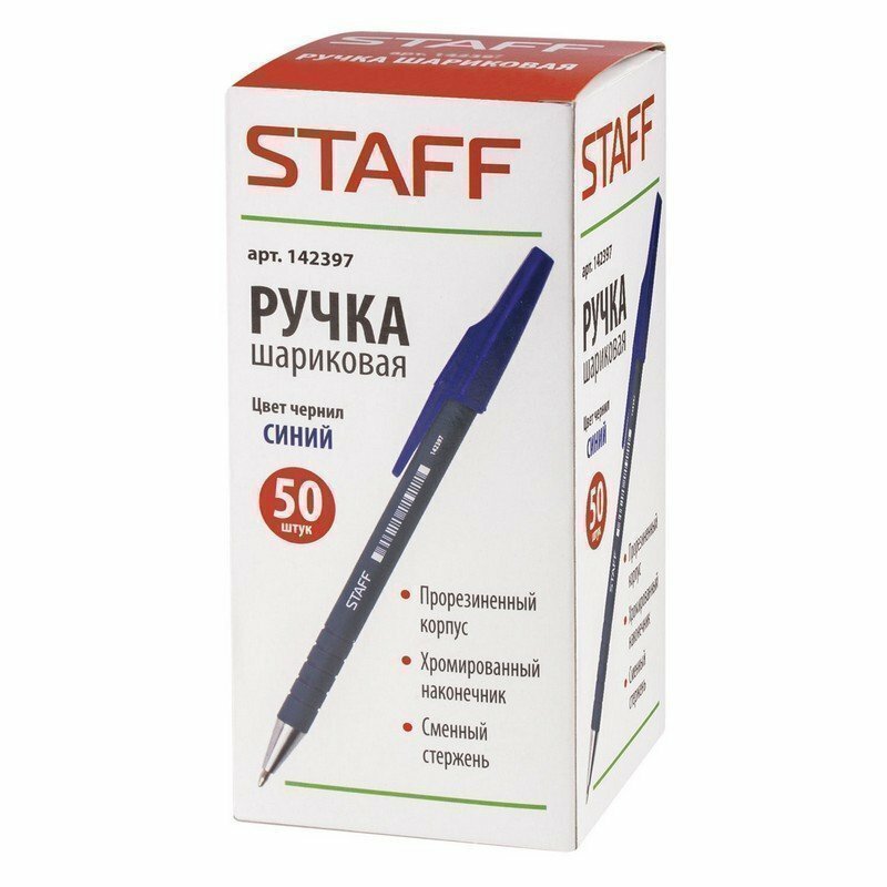 Ручка шариковая Staff (0.35мм, синяя, корпус прорезиненный) (142397), 50шт.
