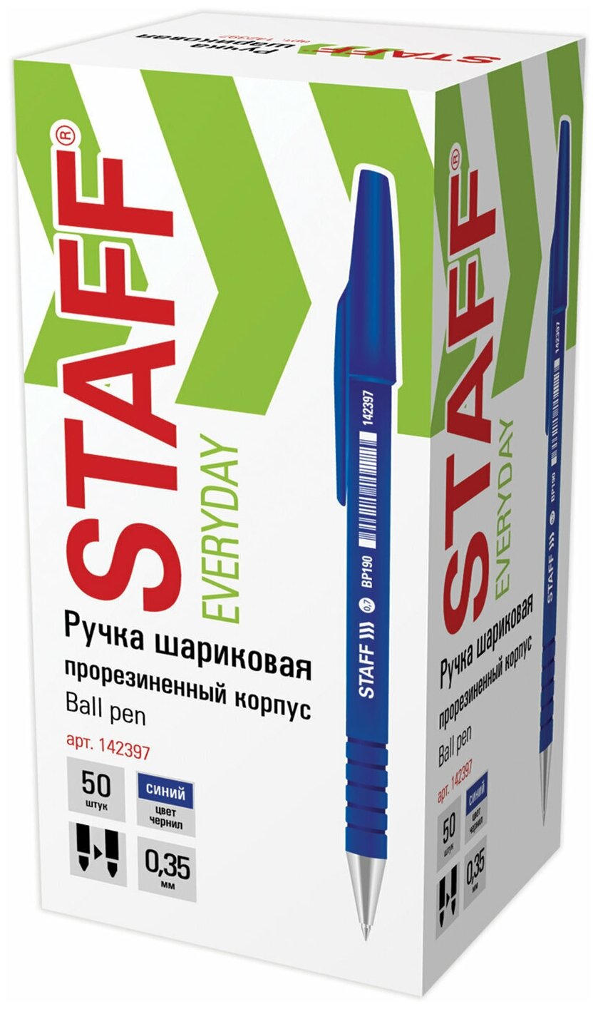 Ручка шариковая STAFF "EVERYDAY" BP-190, синяя, корпус прорезиненный синий, узел 0,7 мм, линия письма 0,35 мм, 142397 (арт. 142397)