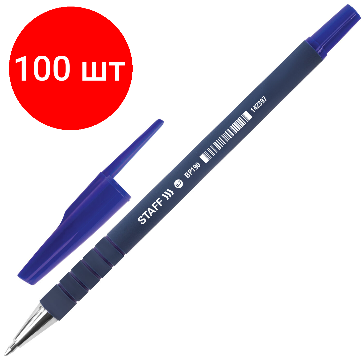 Ручка шариковая STAFF "EVERYDAY" BP-190, синяя, корпус прорезиненный синий, узел 0,7 мм, линия письма 0,35 мм, 142397 (арт. 142397)