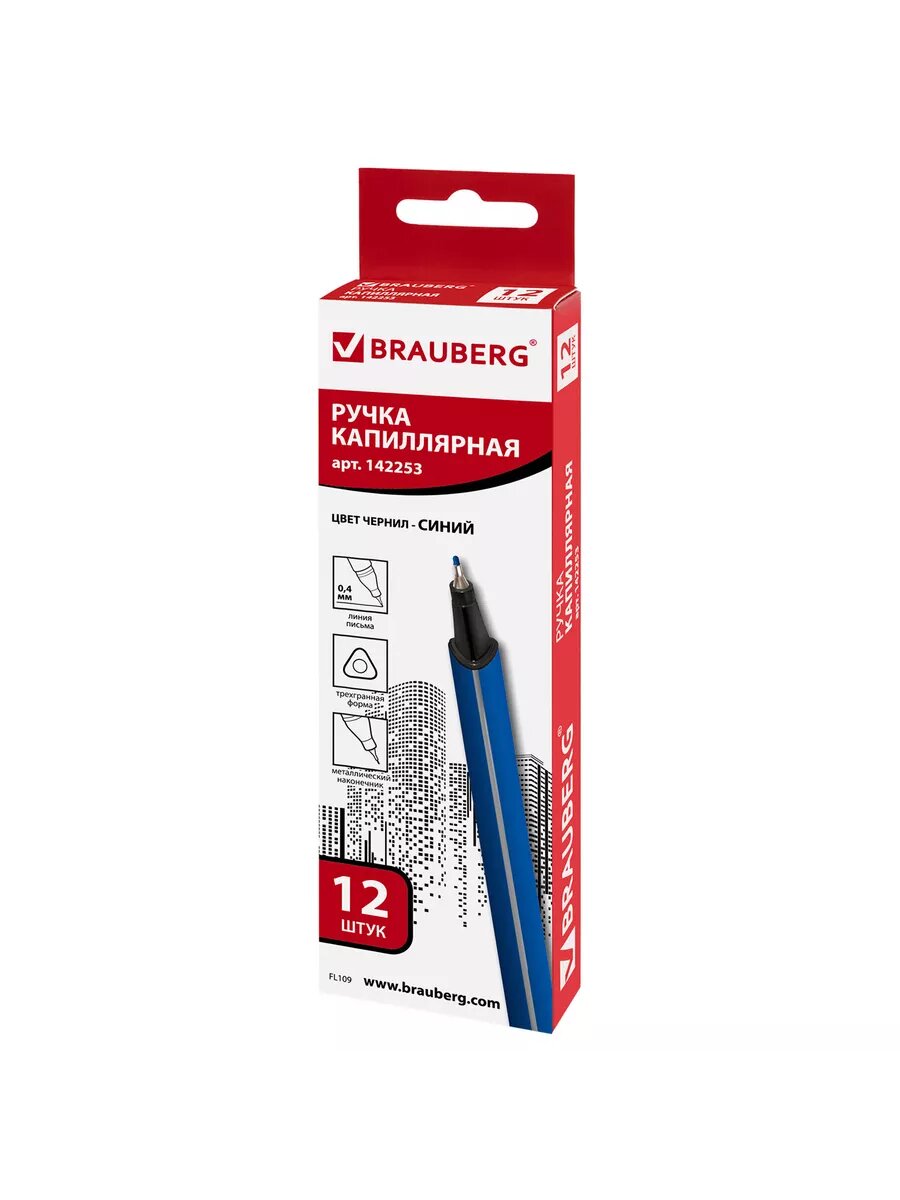Ручка капиллярная Brauberg Aero (0.4мм, метал. наконечник, трехгранная, синяя) (142253), 12шт.