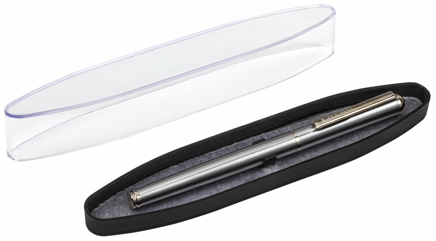 Ручка бизнес-класса перьевая Brauberg Larghetto, синяя, корпус серебристый с хромированными деталями, линия письма 0,25 мм (143475)