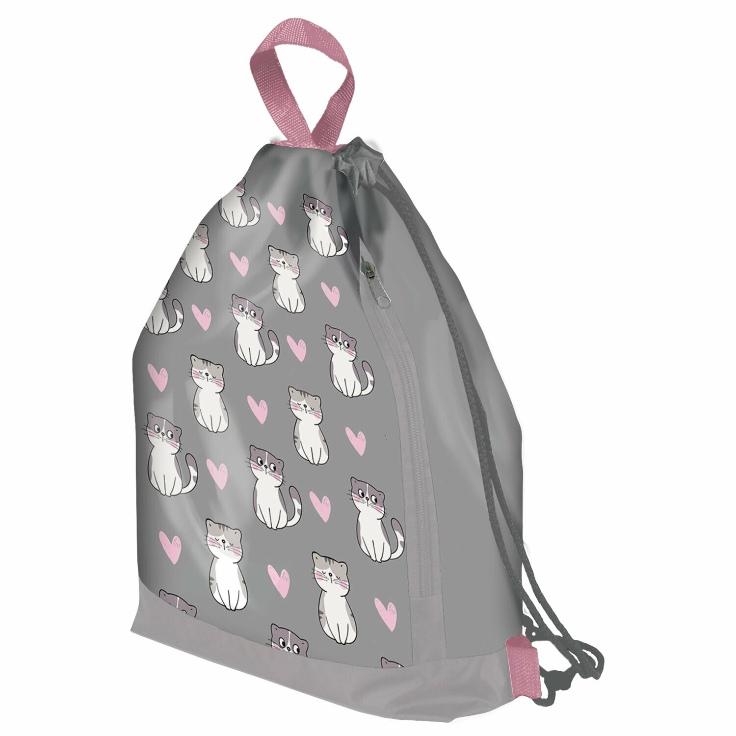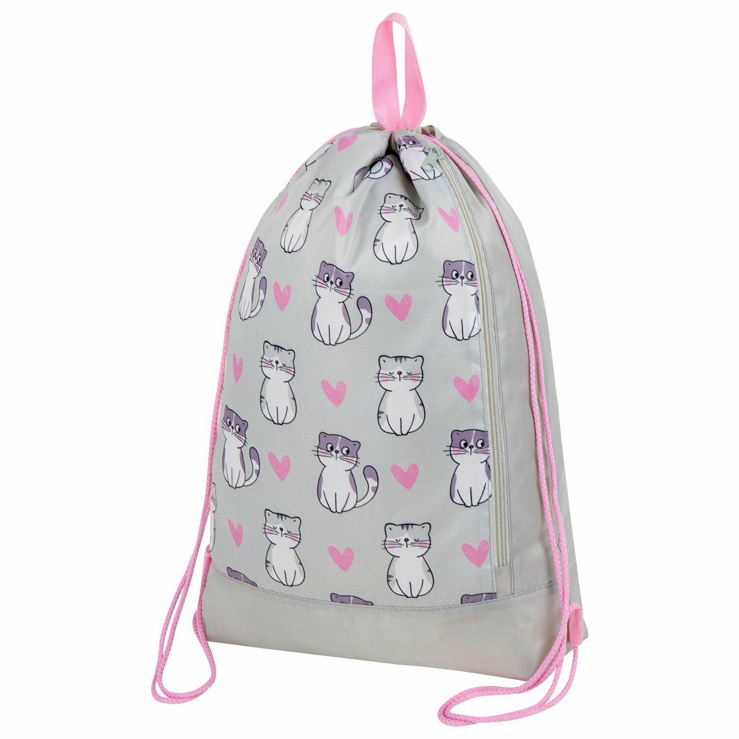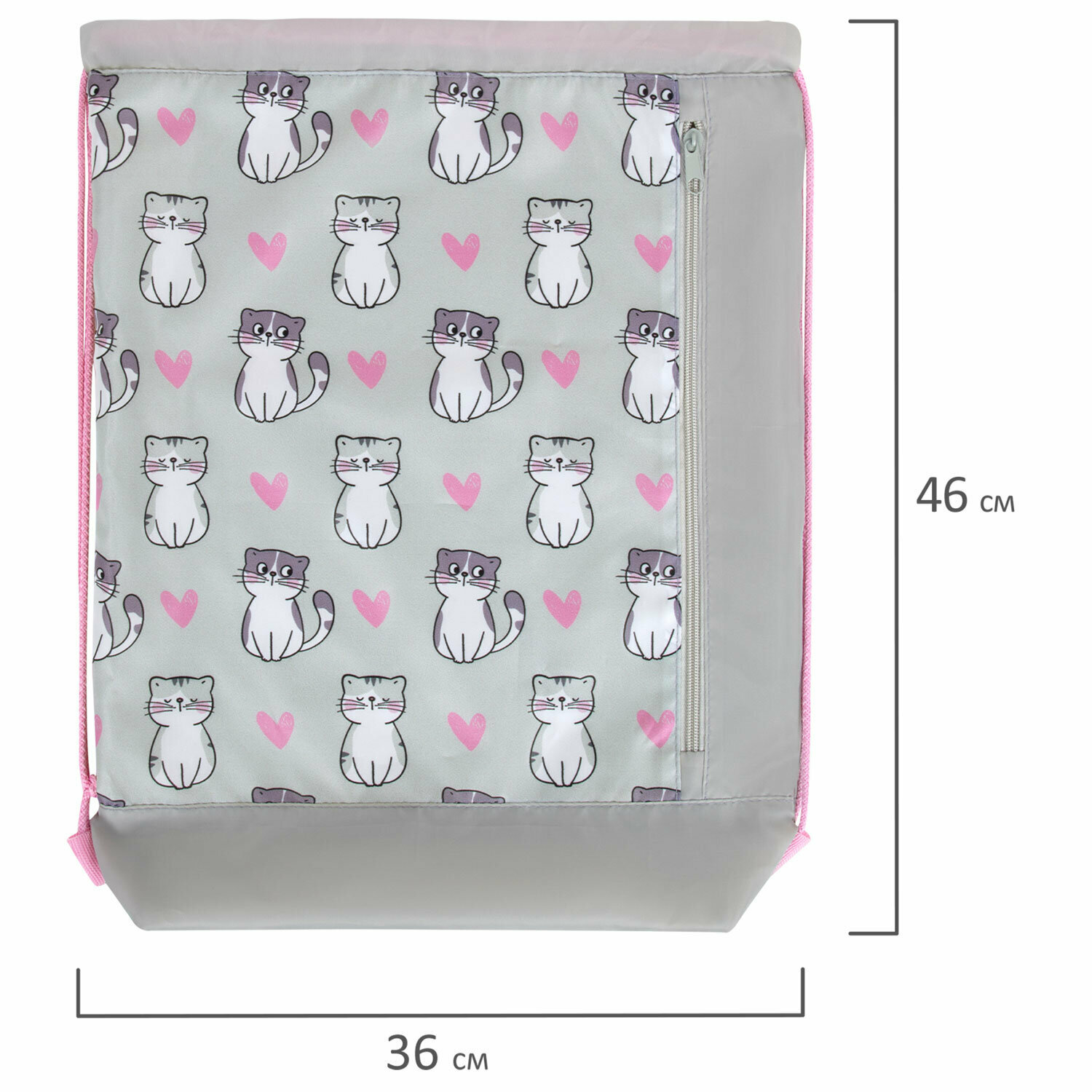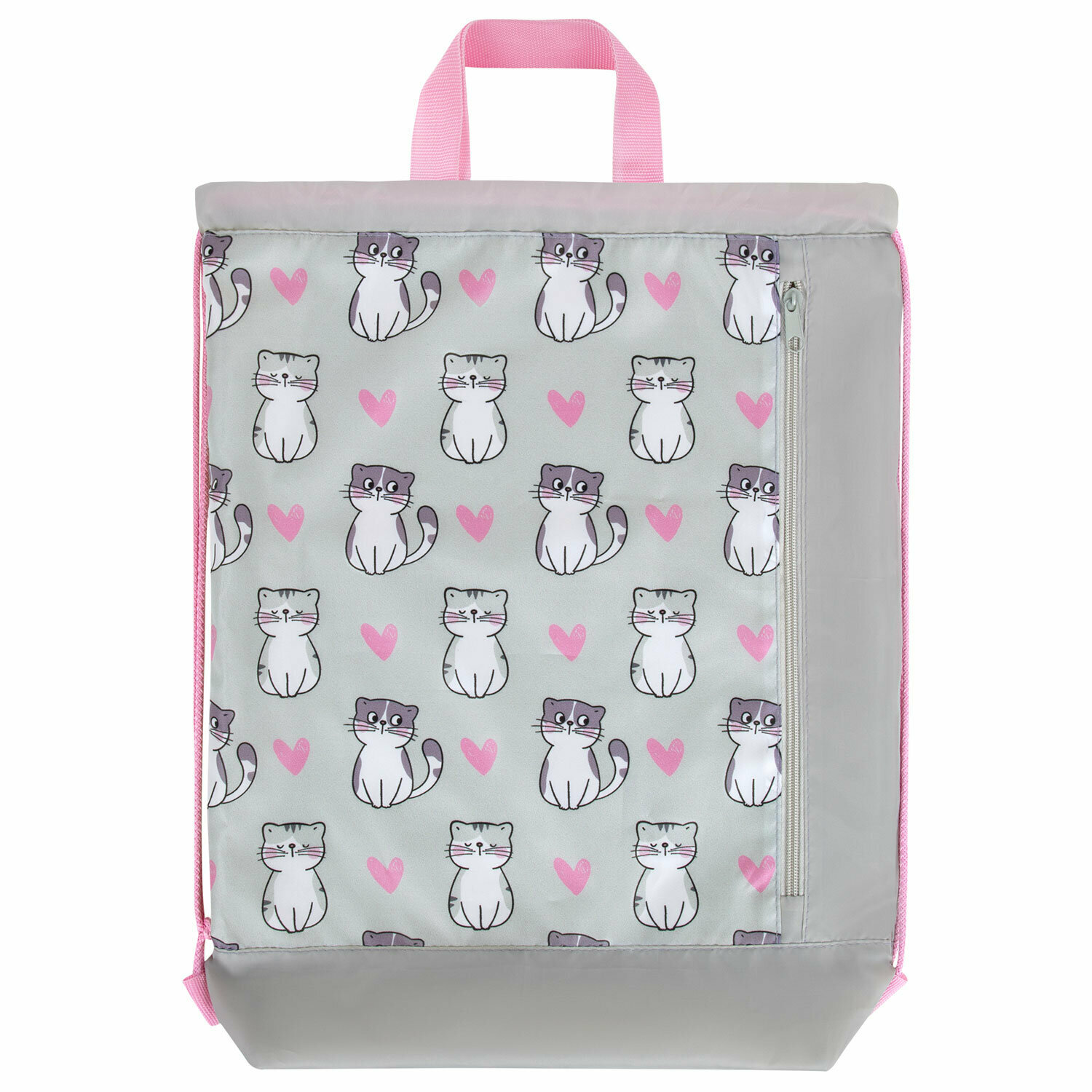 Мешок для обуви для девочек, сумка для сменки в школу, чехол детский плотный с ручками и боковым карманом на молнии, 46х36см, Юнландия Kitties, 272407