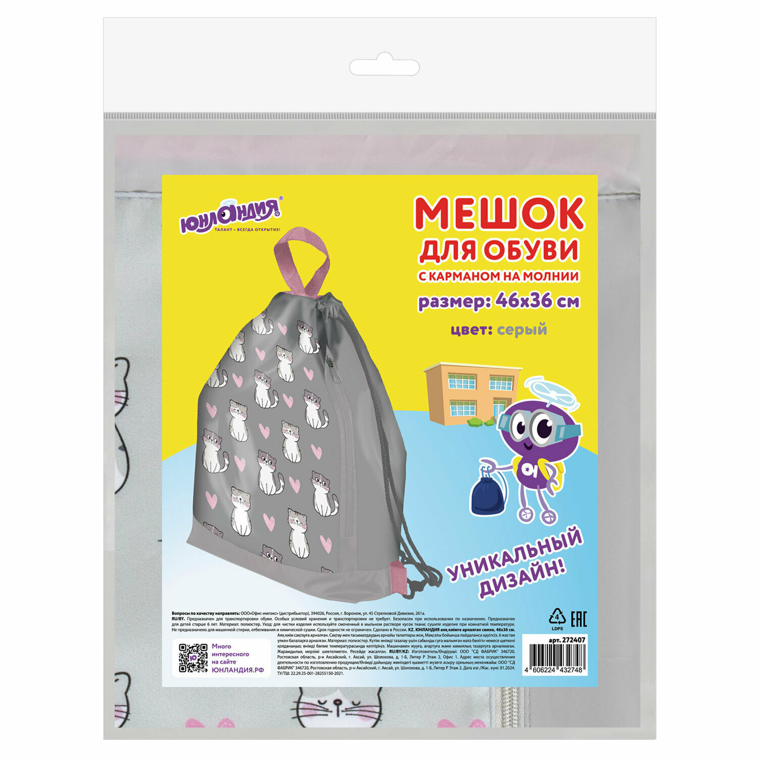 Купить Мешок для обуви юнландия с ручками, боковой карман на молнии, 46х36 см, Kitties, 272407