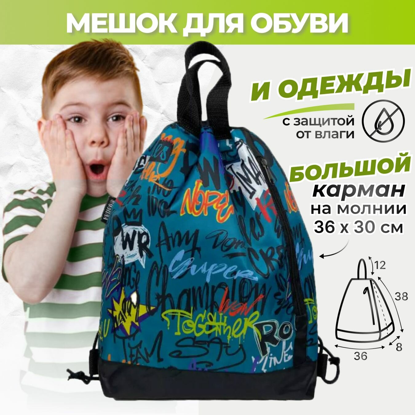 Мешок для обуви в школу с надписями, сумка для сменной одежды и обуви с буквами интересное: