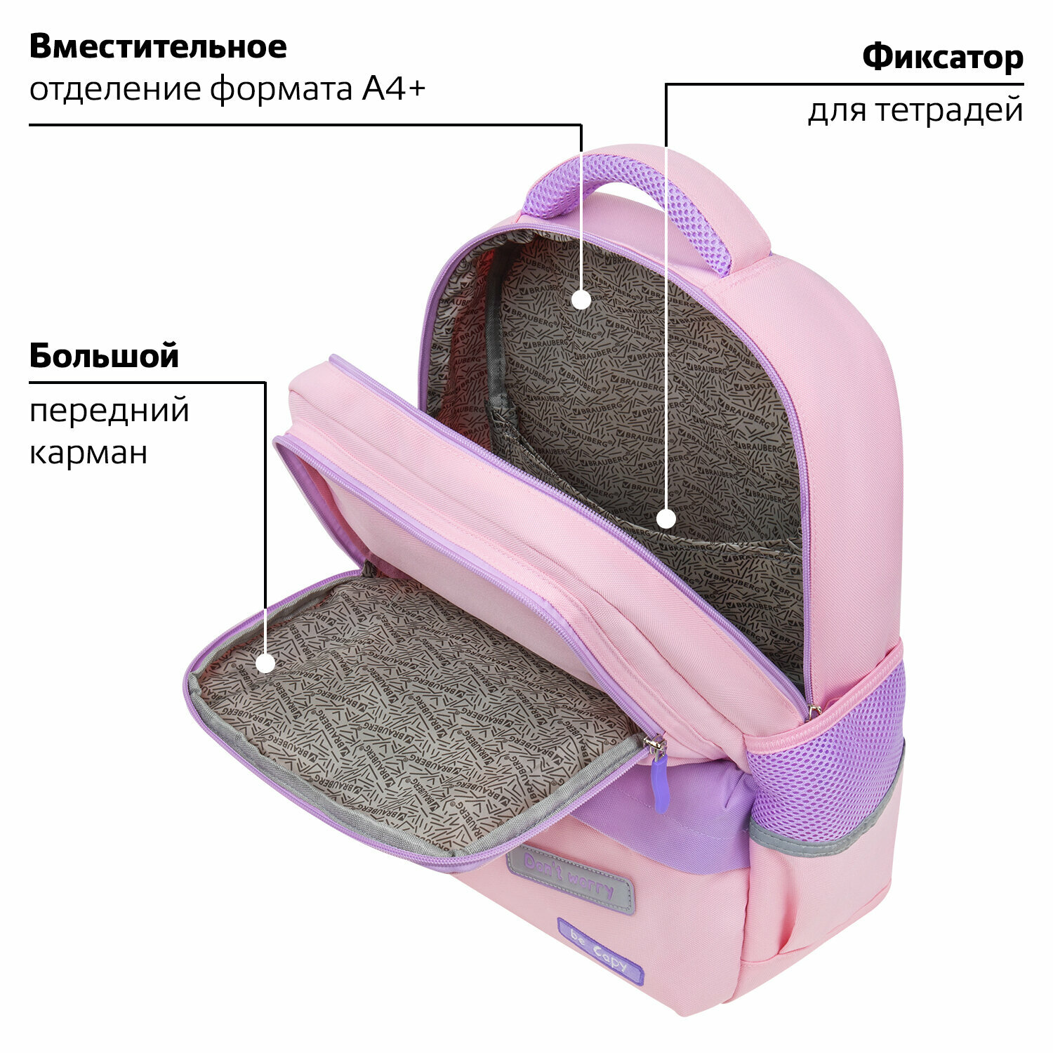 Рюкзак / ранец / портфель школьный для девочек Brauberg Star, 1 отделение, 5 карманов, Dreamy cat, сиреневый, 40x29x13 см, 271424