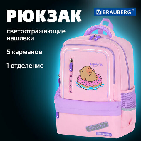 Купить Рюкзак BRAUBERG STAR, 1 отделение, 5 карманов, «Capybara», розовый, 40x29x13 см