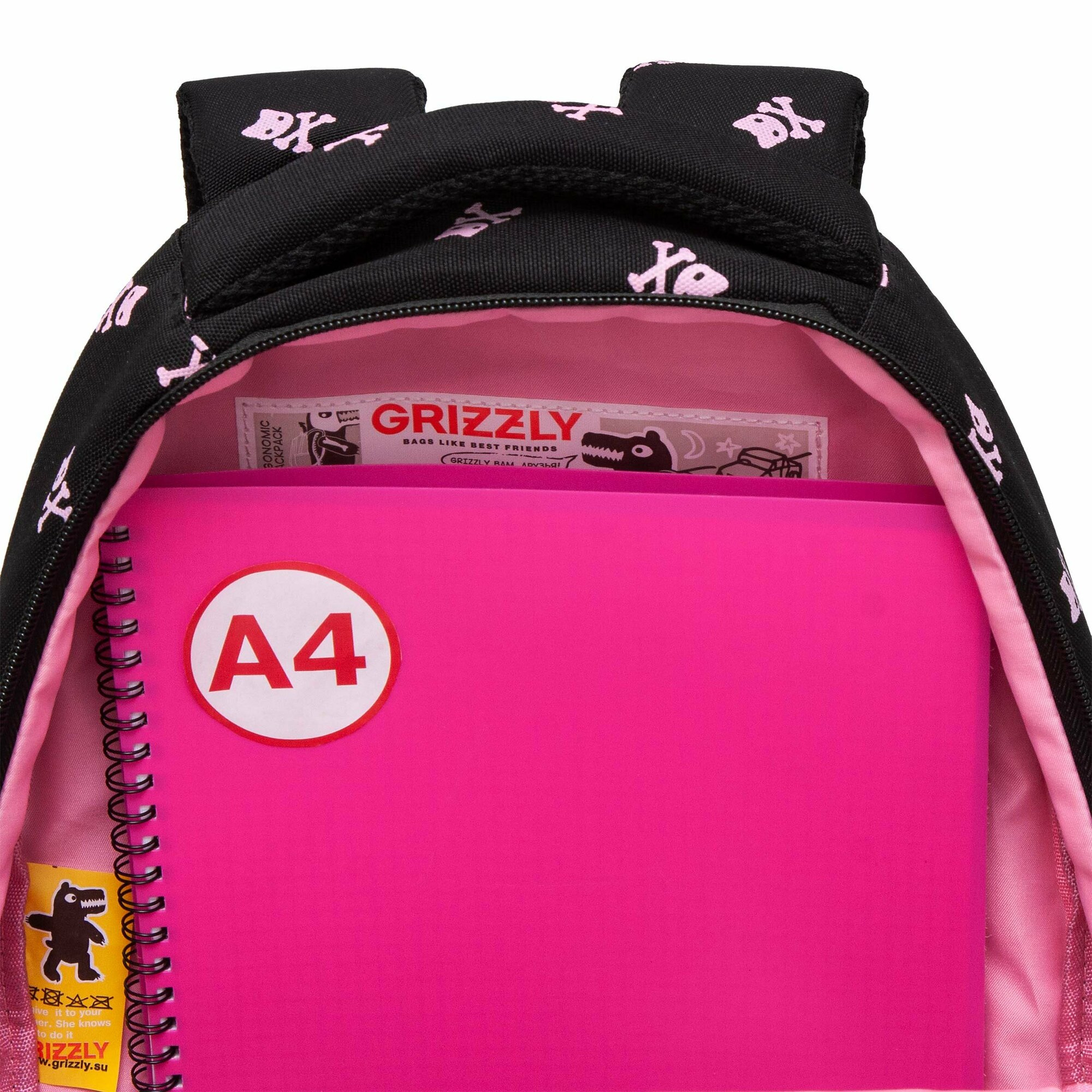 Рюкзак молодежный GRIZZLY с тремя отделениями, укрепленной спинкой, для девочки, женский RG-562-1/1