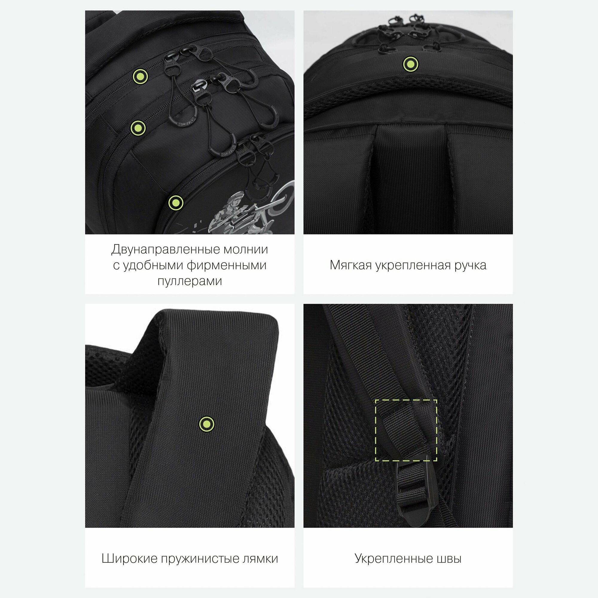 Купить Рюкзак Grizzly школьный, анатомическая спинка, 3 отделения, для мальчиков, "Cycling", 44х28х23 см (RU-335-1/2)