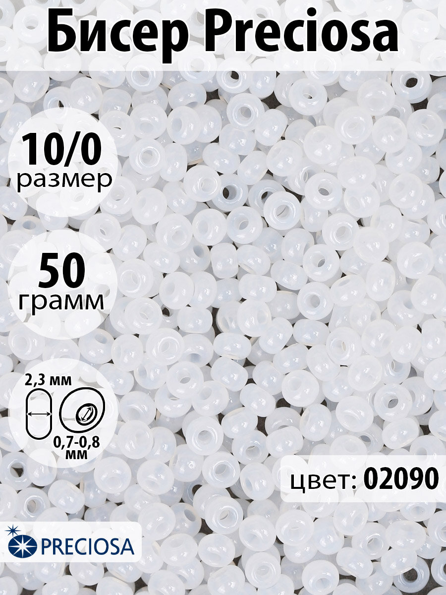 Бисер чешский PRECIOSA круглый 10/0 03050 белый непрозрачный, 1 сорт, 50г