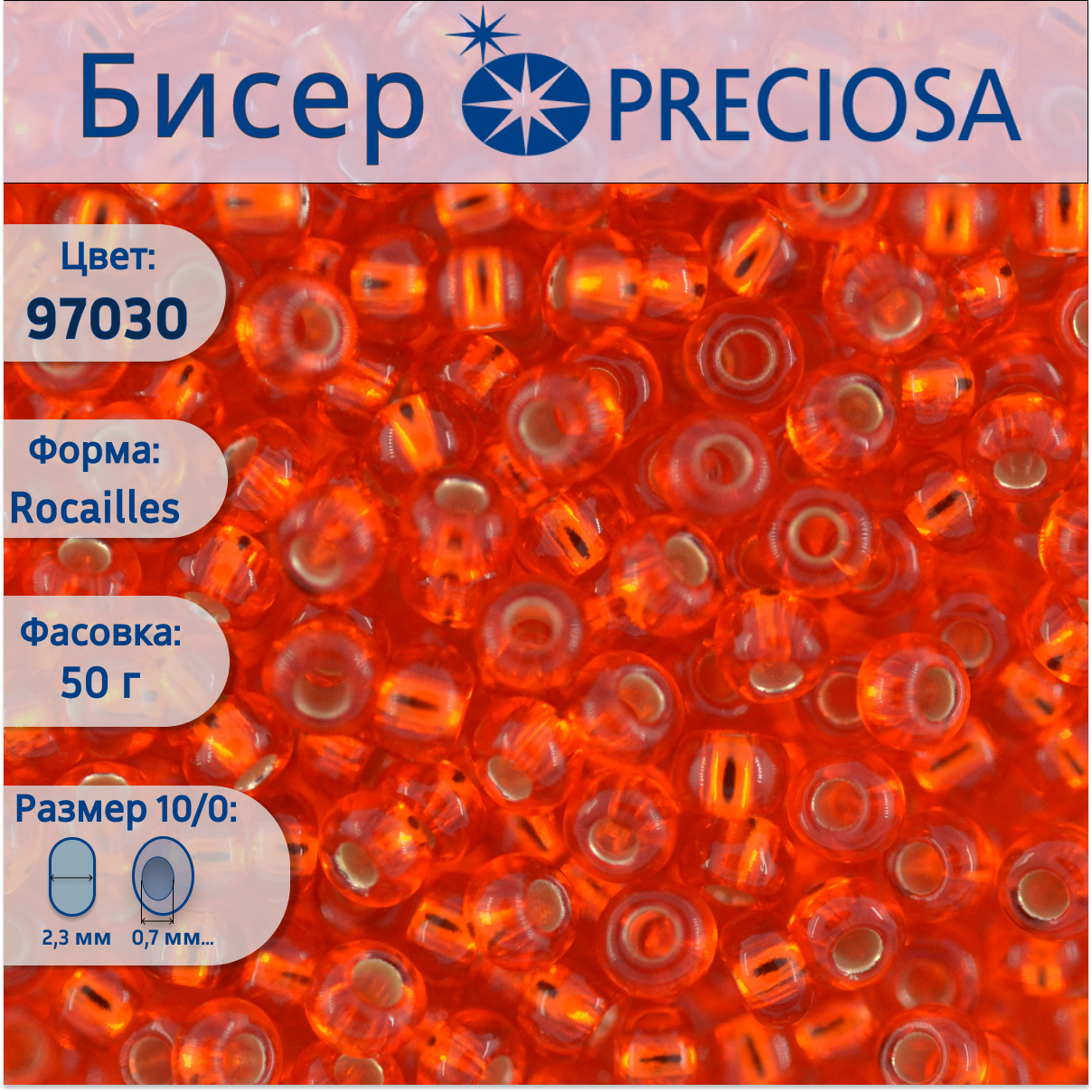 Купить Бисер Чехия Preciosa, 97030, стекло, огонёк, 10/0, круглое отверстие, 50 г, оранжевый