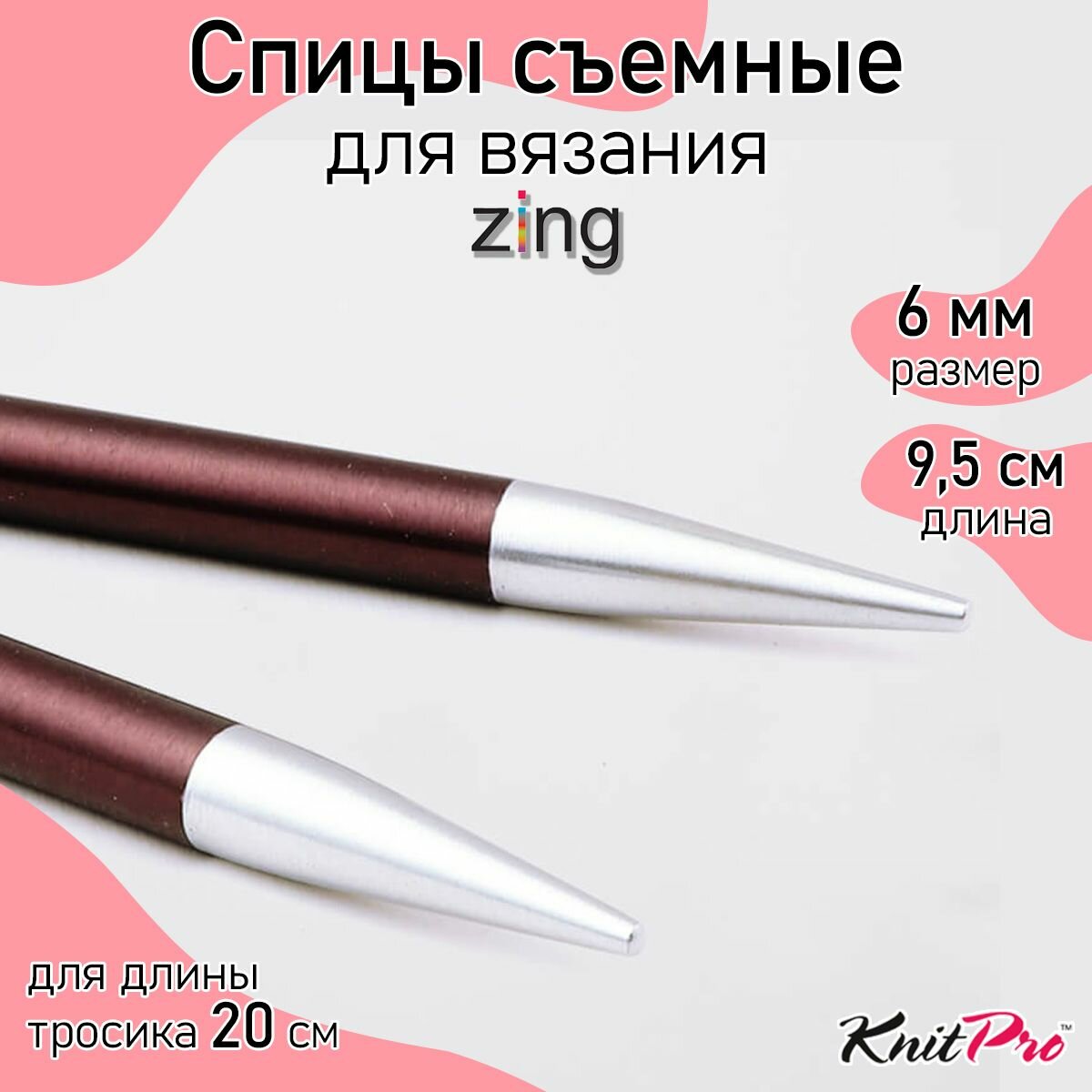 Купить 47527 Knit Pro Спицы съемные для вязания Zing 6мм для длины тросика 20см, алюминий, фиолетовый бархат, 2шт