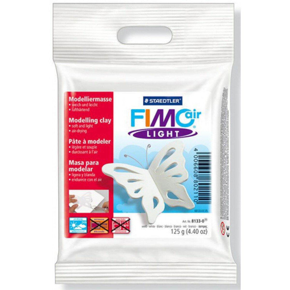 Полимерная глина самозастывающая Fimo Air Light 8133-0 белый (white) 125 г, цена за 1 шт.