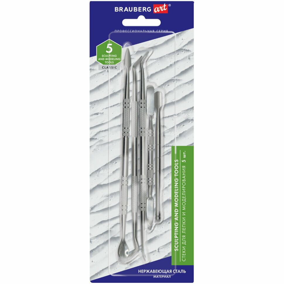 Купить Стеки для лепки и моделирования металлические набор 5 шт., BRAUBERG ART CLASSIC, 271172